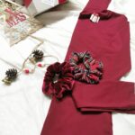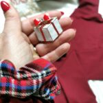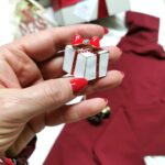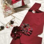 поло блуза, скрънчи, коледна брошка и красива опаковка с панделка.