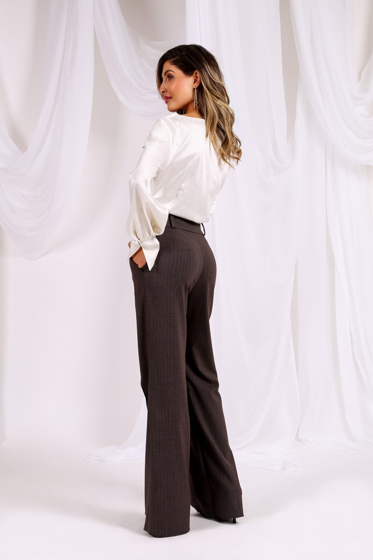 Моделът разполага с италиански джоб и удължен укроен колан с гайки  за по-елегантно и стабилно прилягане.