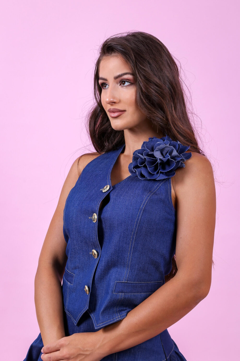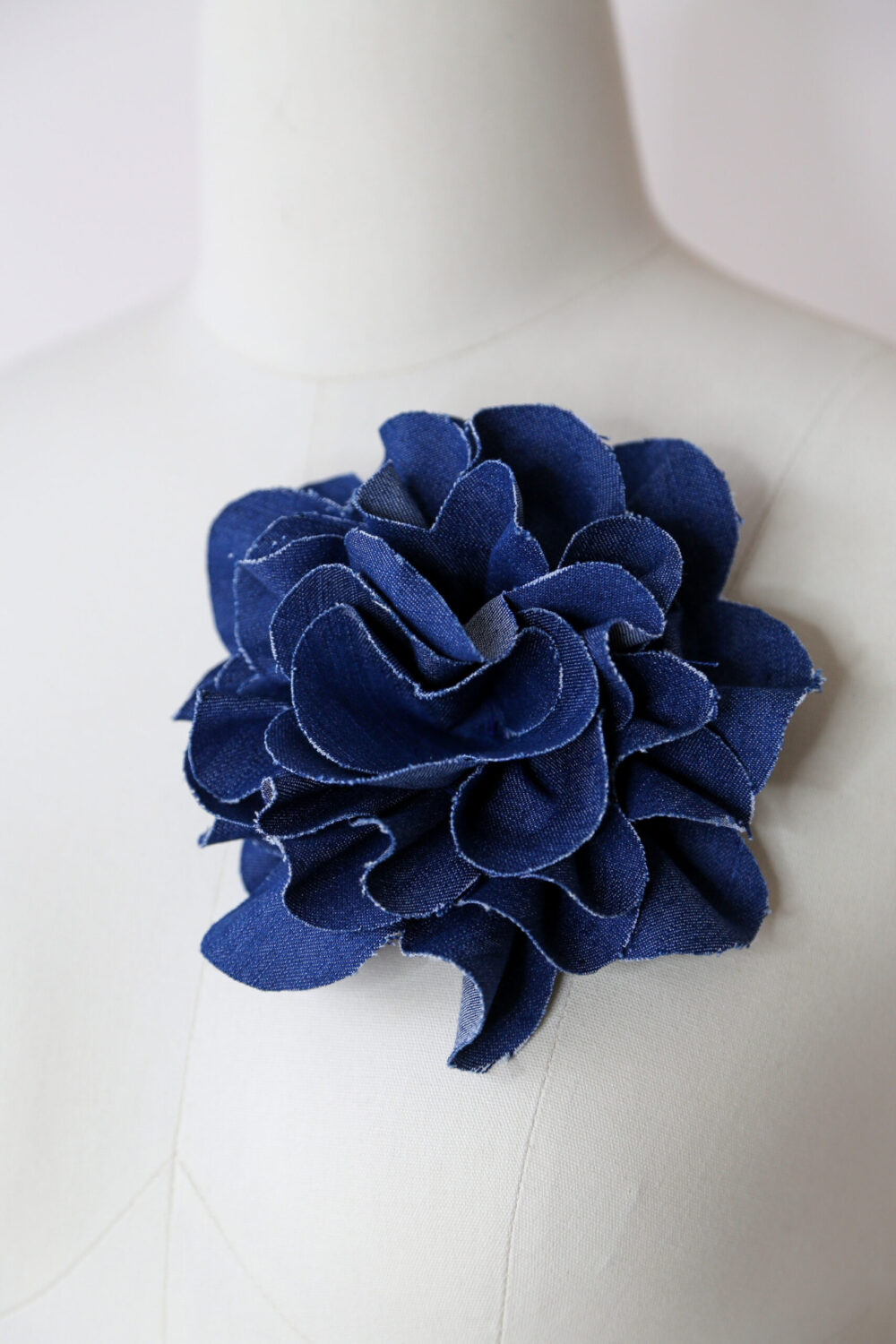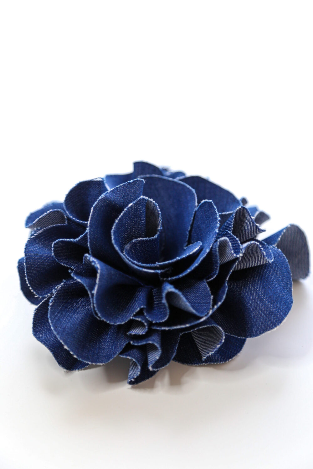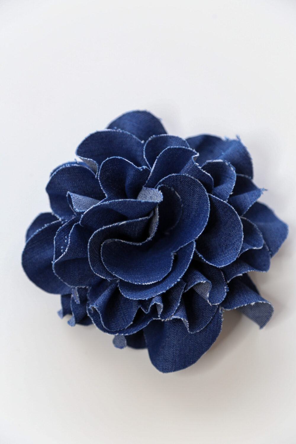 Ръчно изработената брошка във формата на цвете от дънков плат е уникален и стилен аксесоар, който добавя свежест и оригиналност към всяко облекло. Създадена с внимание към детайла, брошката е изработена от висококачествен деним, придаващ й устойчивост и характер. Нежно изрязани и оформени, слоевете на цветето разкриват текстурата на дънковата тъкан, създавайки впечатление за небрежна елегантност. Брошката е подходяща както за ежедневни, така и за по-официални тоалети, придавайки им артистичен и модерен завършек. Закопчаването е сигурно и надеждно, гарантиращо удобно носене през целия ден.