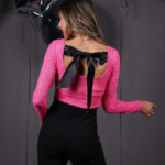 * Отворен гръб с голяма черна панделка