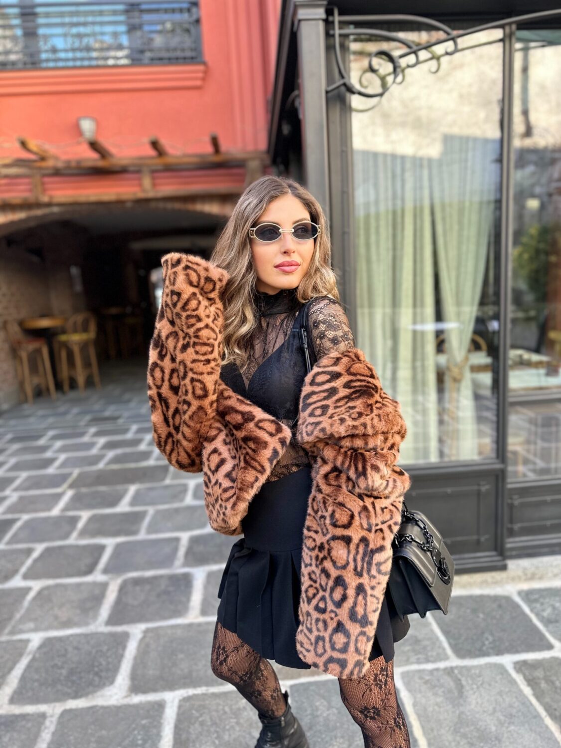 Моделът е висок 172см. с мерки 85/65/92 и позира с размер “XS”.