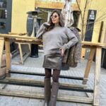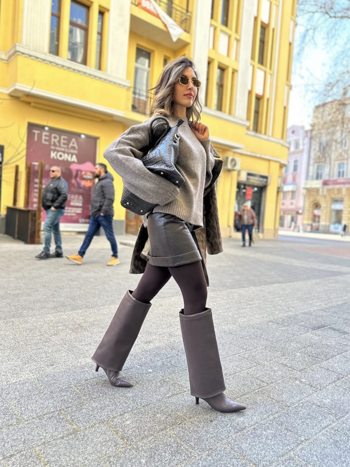 Моделът е висок 172см с мерки 84/64/89позира с размер “XS”.