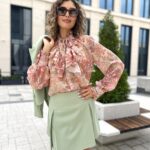 Моделът е висок 172см. с размери 83/63/88 и позира с размер “XS”.