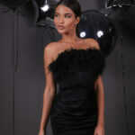 Елегантно съчетание на щраусови пера в комбинация с вискозен сатен. Такава е новата рокля “Angelina”
