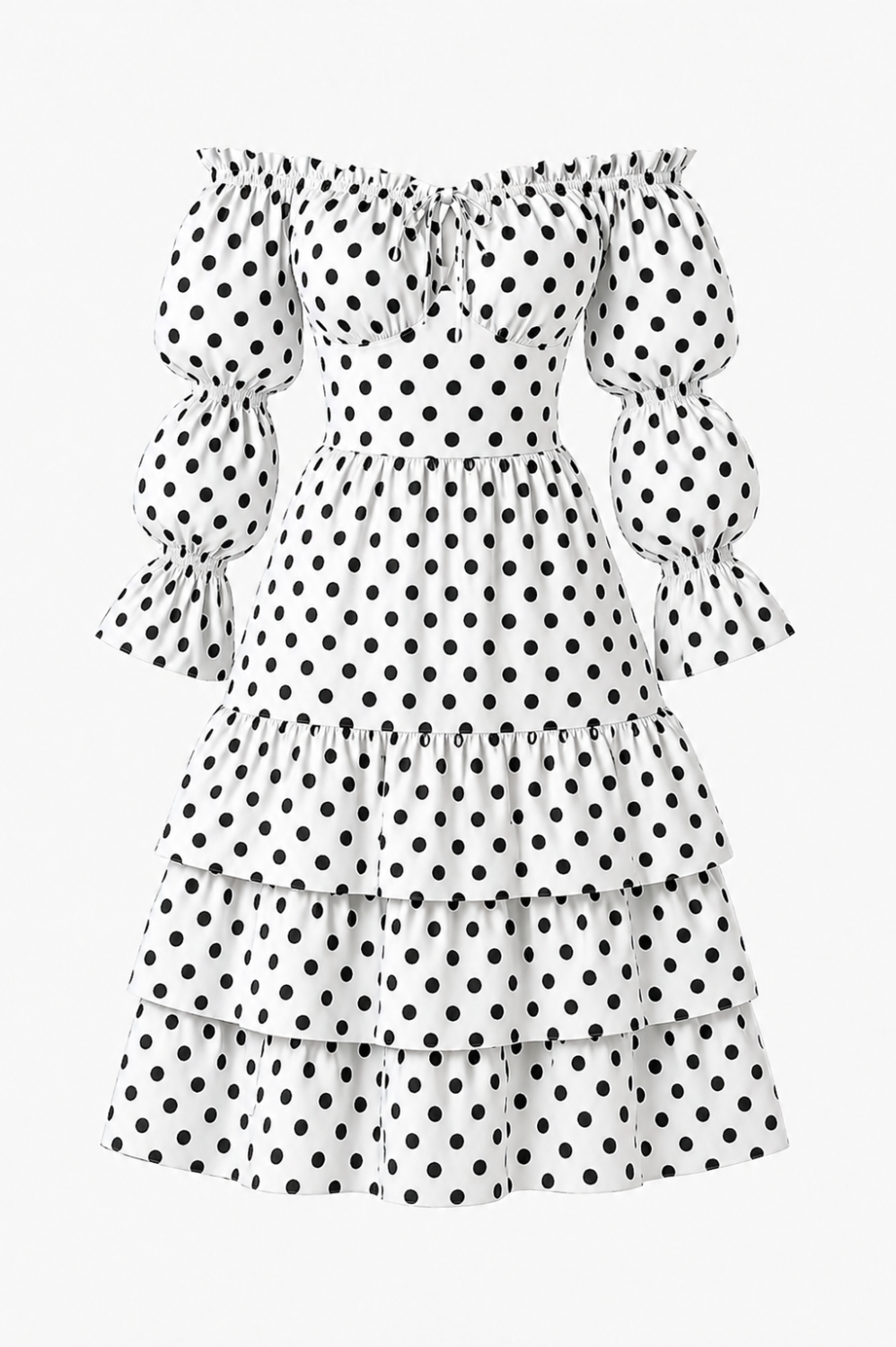 Дамска рокля BIANCA MIDI  е създадена за жената, която търси баланс между елегантност и изразена женственост. Класическият десен на черни точки придава изискан и вечен характер, а ефирната материя създава лекота и движение.