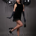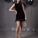 Роклята ще ви очарова с изтънчена, елегантна и изчистена линия. Наблегнахме на естествени нежни материи, а именно памучно кадифе, което съчетахме с два реда щраусови пера. А за завършак елегантно V-образно деколте с изящна панделка от сатен в задната част внасяща предизвикателен почерк на роклята. Бъди “Черният лебед” и се отличавай от другите, където и да си!