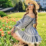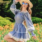 Силуетът с паднали рамене и разкроена пола с волани създава усещане за лекота и движение, а еластичната горна част подчертава фигурата без да ограничава. Идеален избор за летни събития, уикенд разходки или стилни моменти на открито.