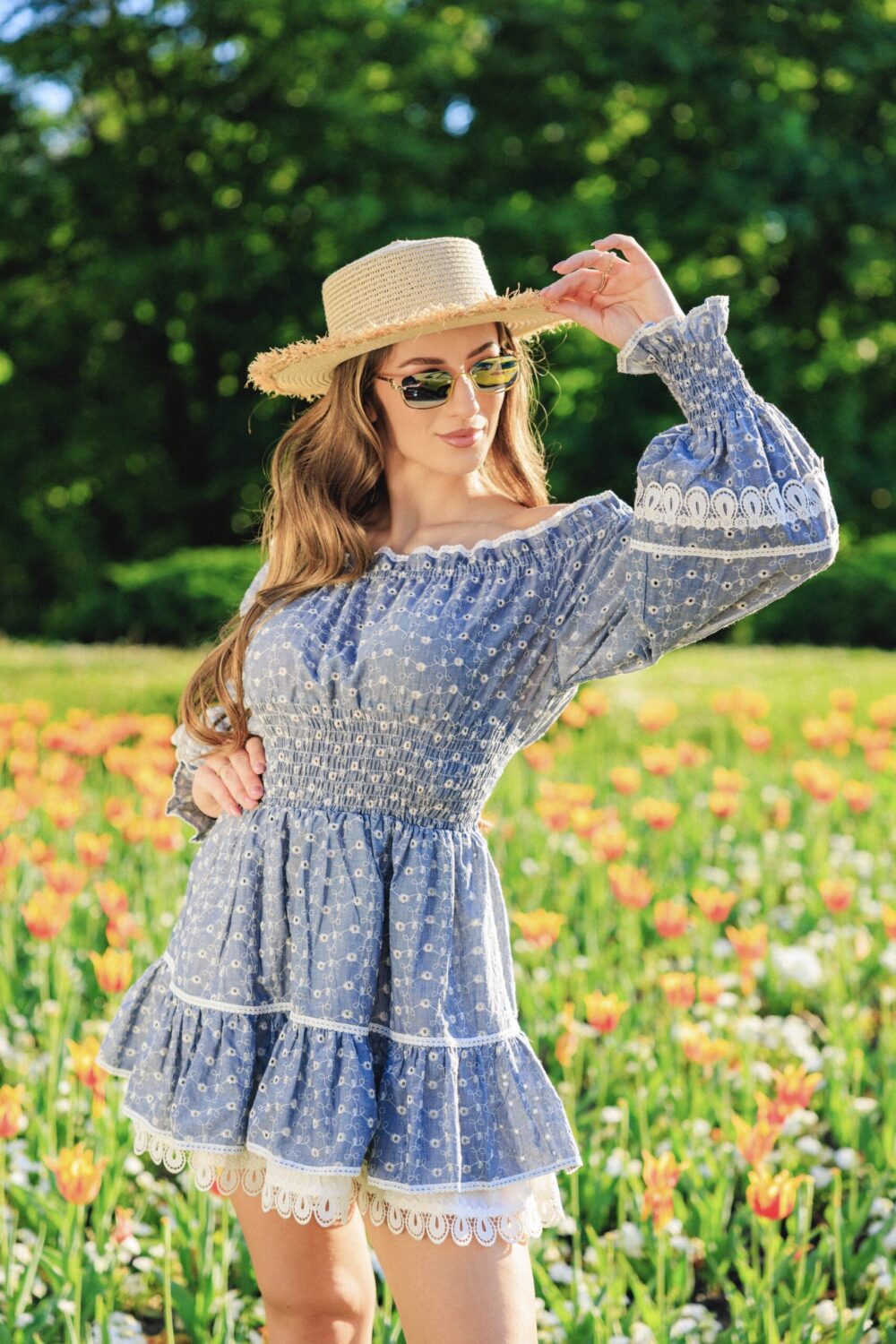Открийте лекотата на летните дни с рокля „Blue Belle“ — нежна комбинация от елегантност и бохемски стил. Изработена от висококачествен памук с рязана дантела в сиво-син нюанс, роклята е завършена с фин декоративен акцент — брюкселска дантела в екрю, която придава изтънчен винтидж характер и внимание към детайла. Подплатата също е изцяло от памук, осигурявайки мекота и комфорт при носене.
