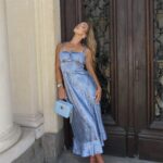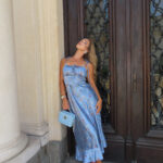 Роклята съчетава комфорт и елегантност, като предлага свобода на движение и нежна визия, подходяща за градински партита, романтични вечери или официални събития.