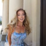 Моделът е висок 173см. с мерки 88/68/94 и позира с размер “S”