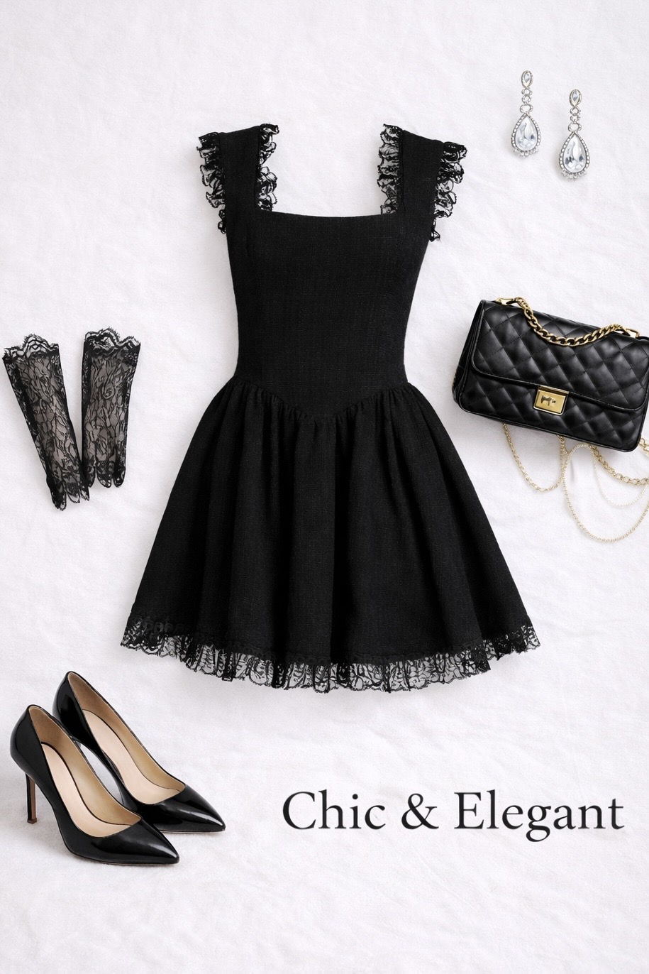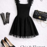 Вталената горна част плавно преминава в разкроена пола, която придава нежна, кукленска линия. Дантелата по деколтето и подгъва добавя фин завършек и усещане за лукс.