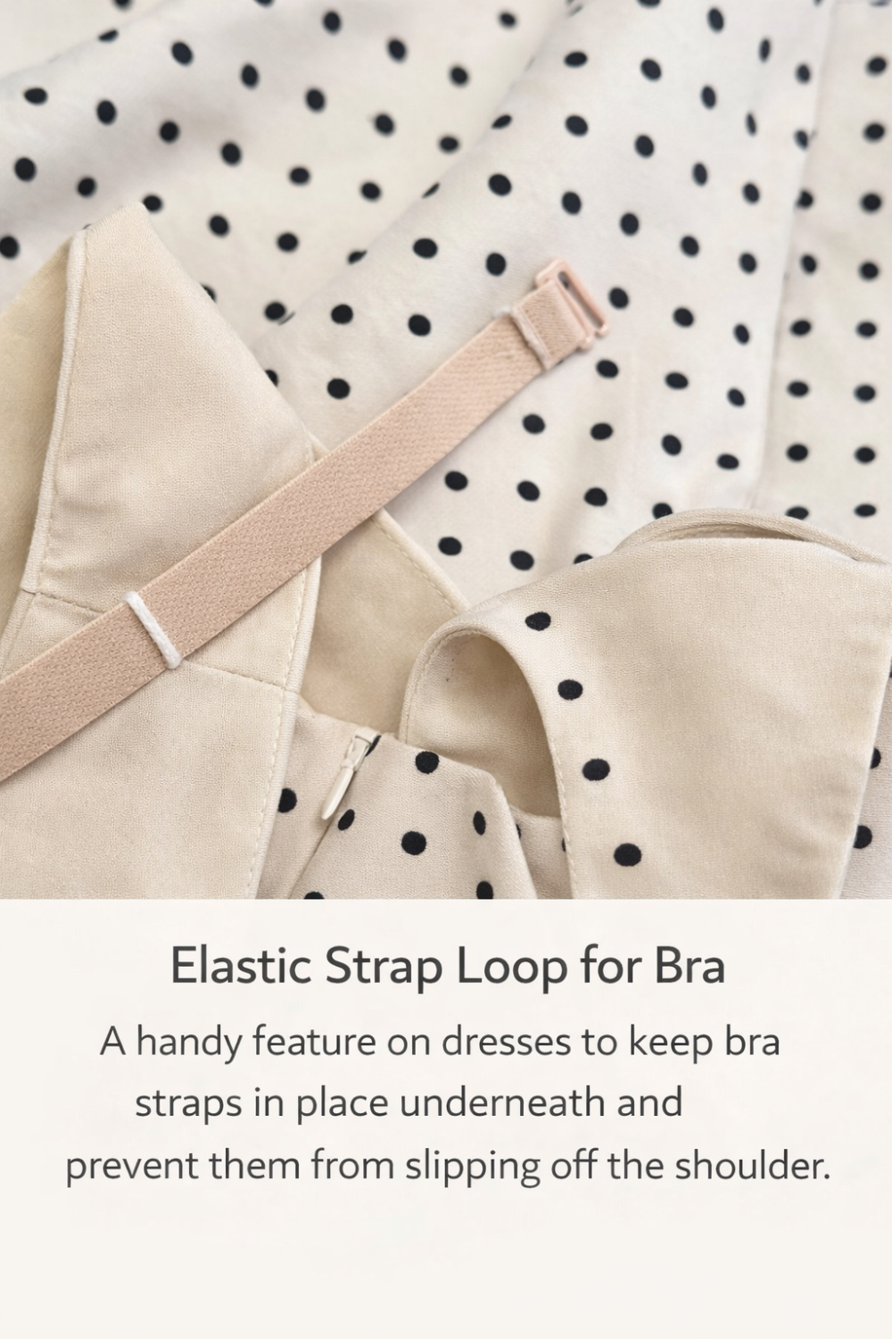Елегантна дамска рокля с изискан десен на точки и балансиран, женствен силует. Моделът е с квадратно деколте и широки презрамки, които оформят горната част с чиста и модерна линия. Разкроената пола придава обем и движение, а меката подплата с еластан осигурява комфорт и приятно усещане при носене. Подходяща за стилни дневни визии и специални поводи.