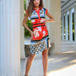 * Колан, подчертаващ талията, с надпис “La mode de Denica”