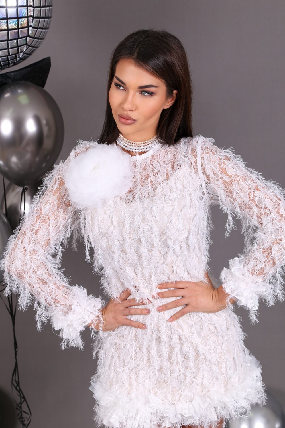 Ефектна рокля изработена от дантела с перца.
