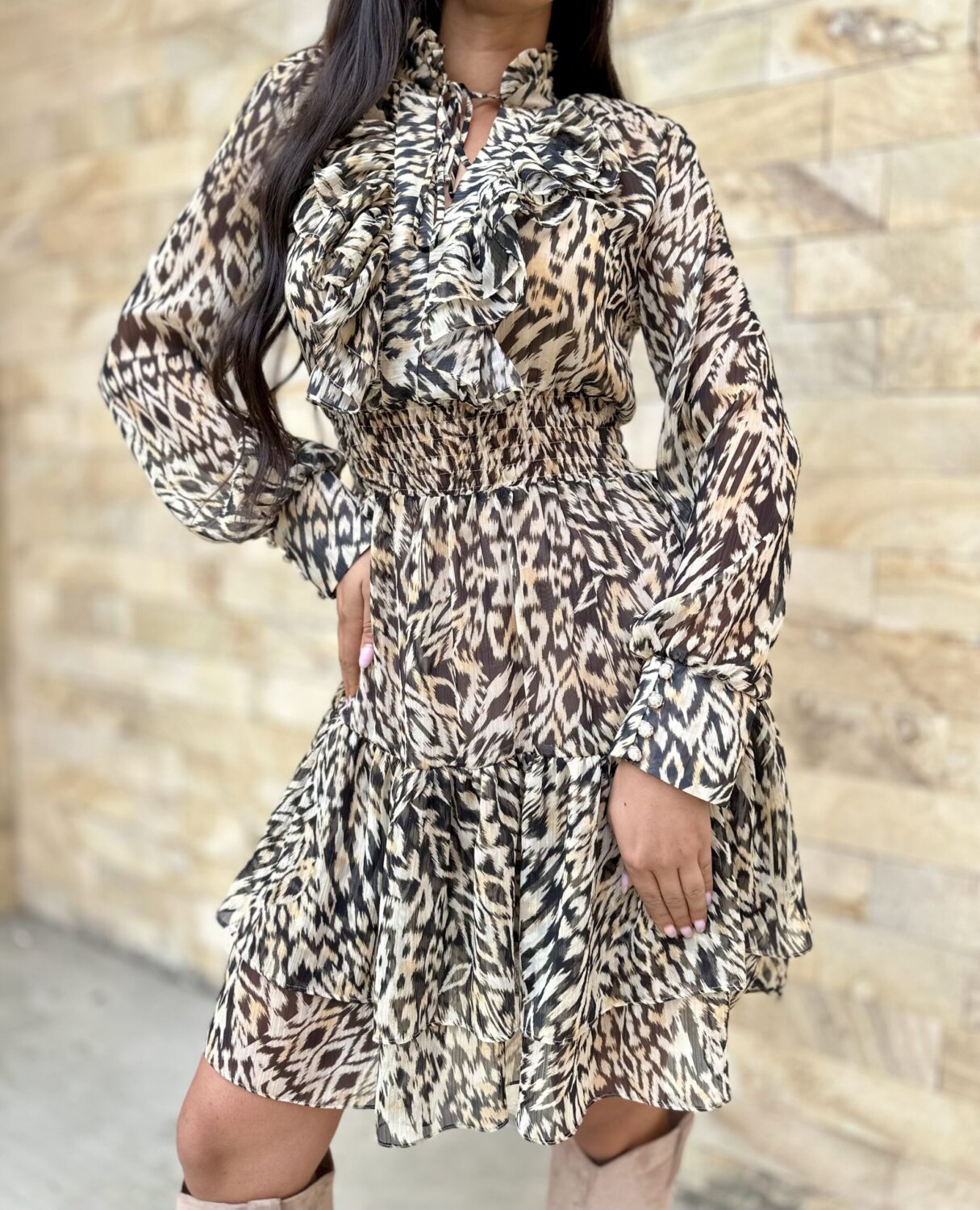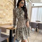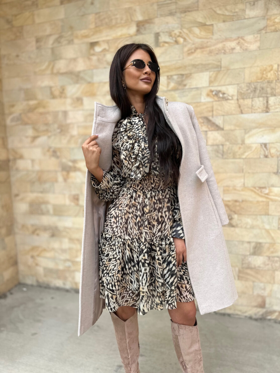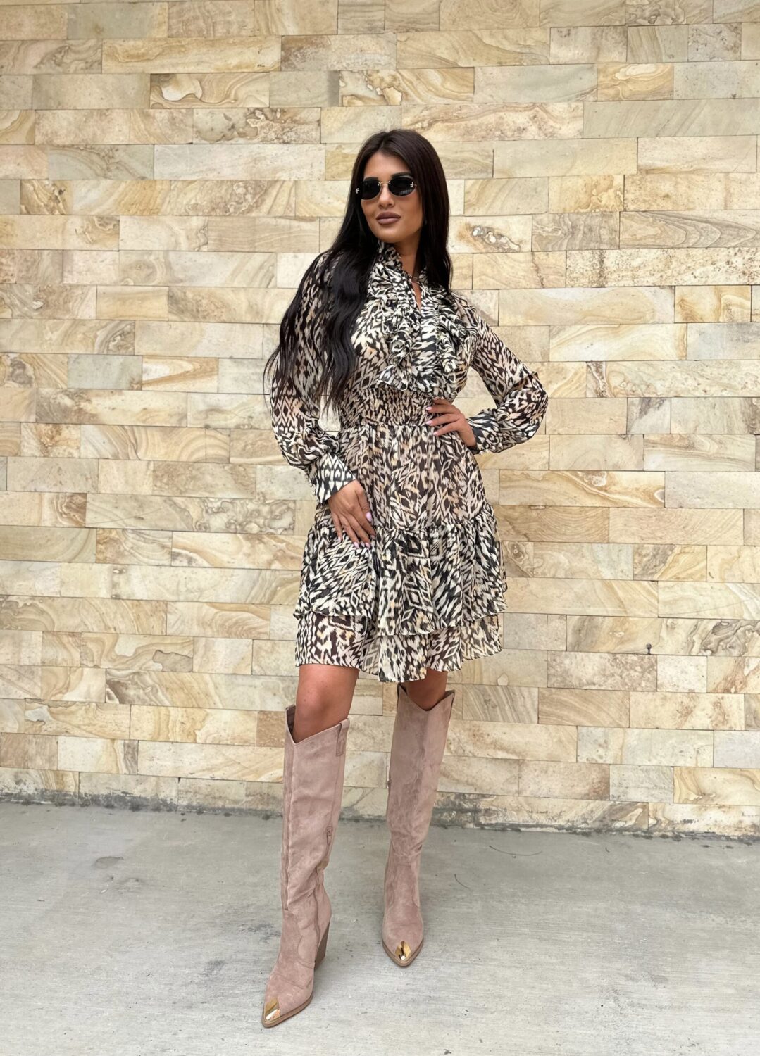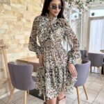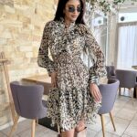 Ефирна рокля в геометричен принт изработена от лек и ефирен шифон с деликатна златиста нишка.