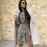 Моделът е висок 173см. с мерки 88/64/92 и позира с разме “S”