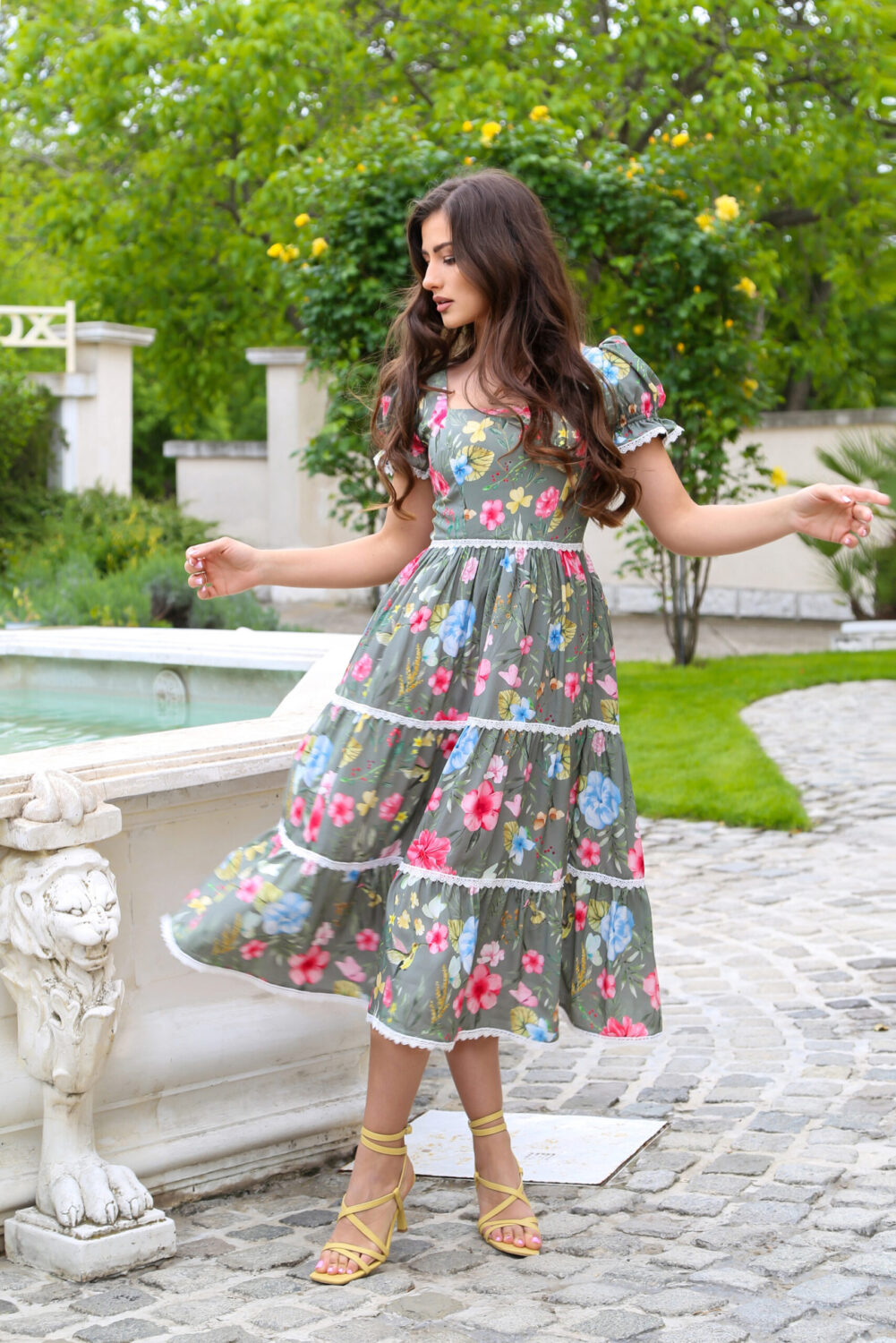 Дамска рокля Magnolia с флорален десен е като излязла от приказен цветен свят.