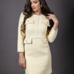 Прекрасно бижу в нашата колекция. Изработена от бледожълто, италианско букле премесено с екрю и ламе нишки. Почувствайте се истинска жена в нашата рокля “Marilyn”.