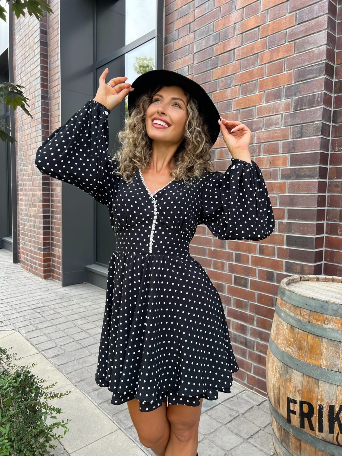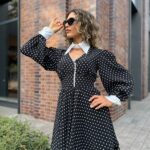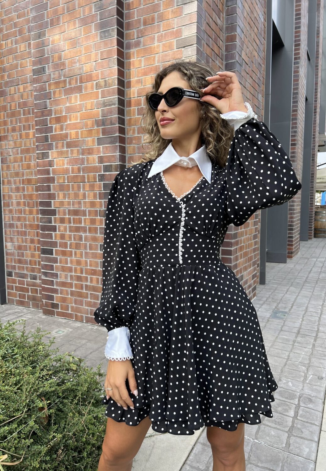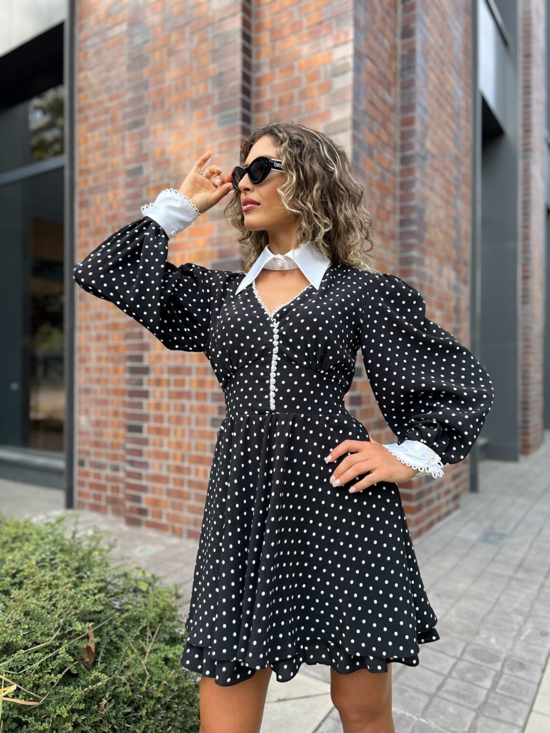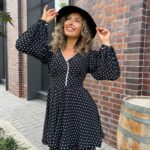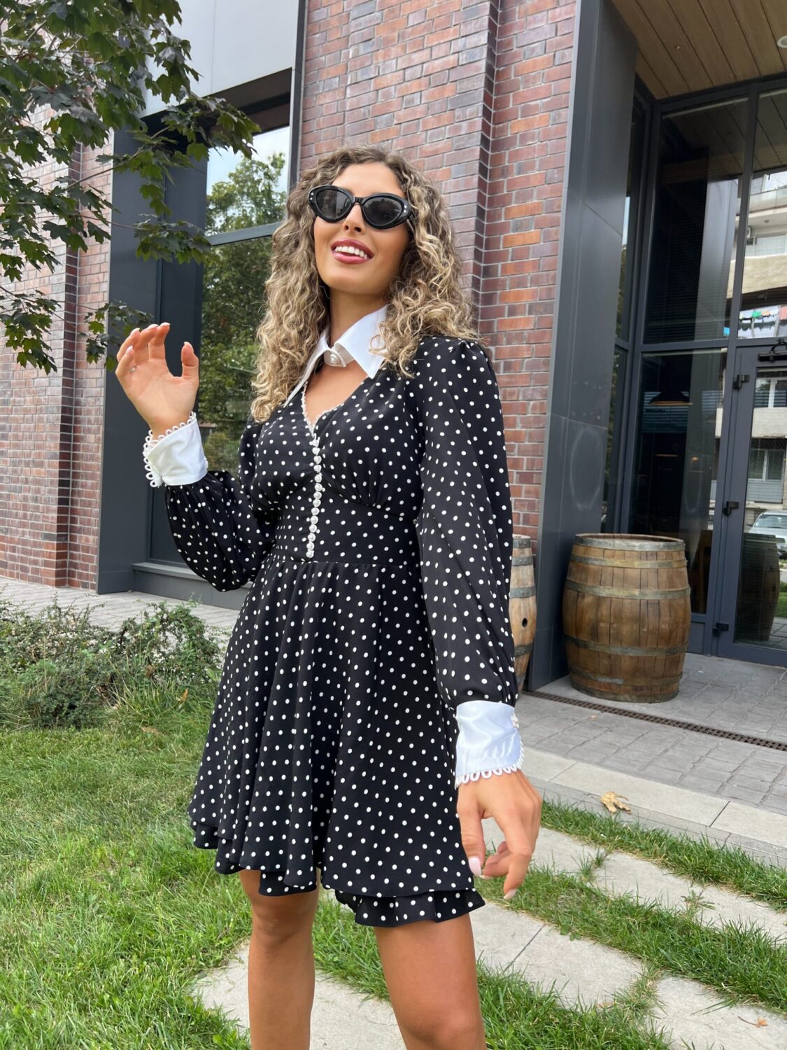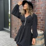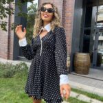Моделът е висок 172см. с размери 83/63/88 и позира с размер “XS”.