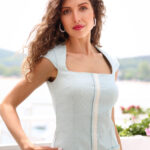 Моделът е висок 172см. с размери 83/63/88 и позира с размер XS