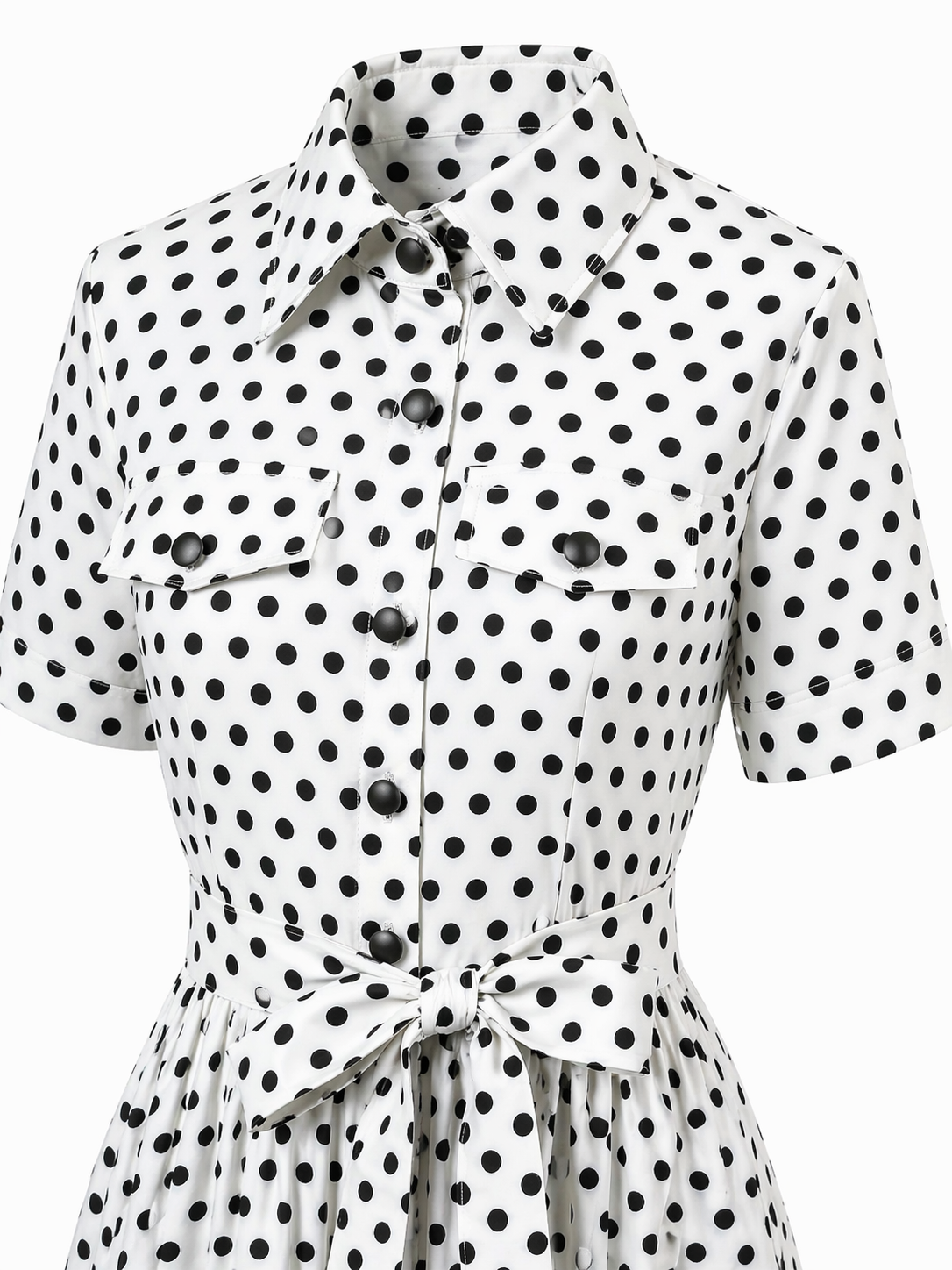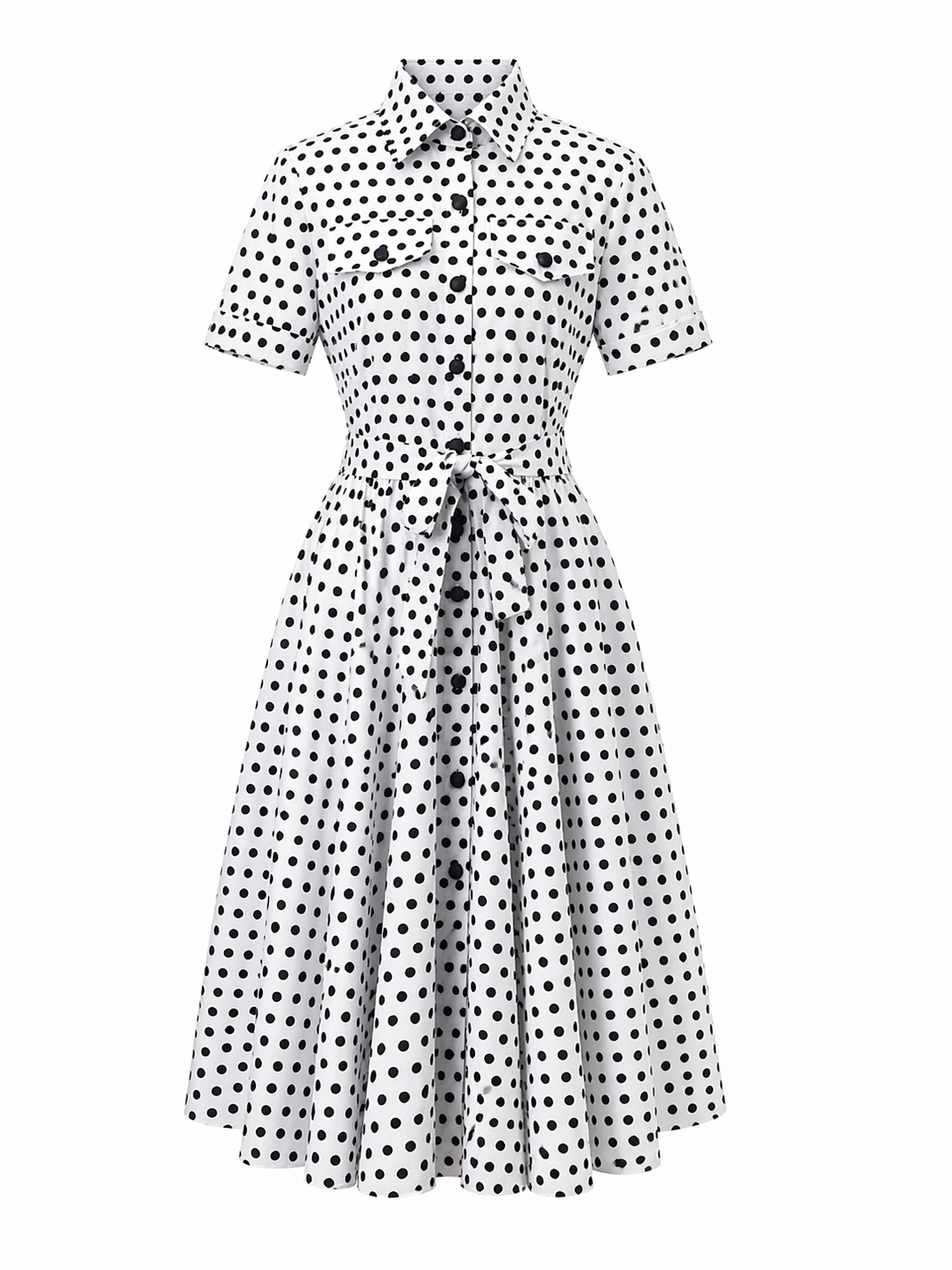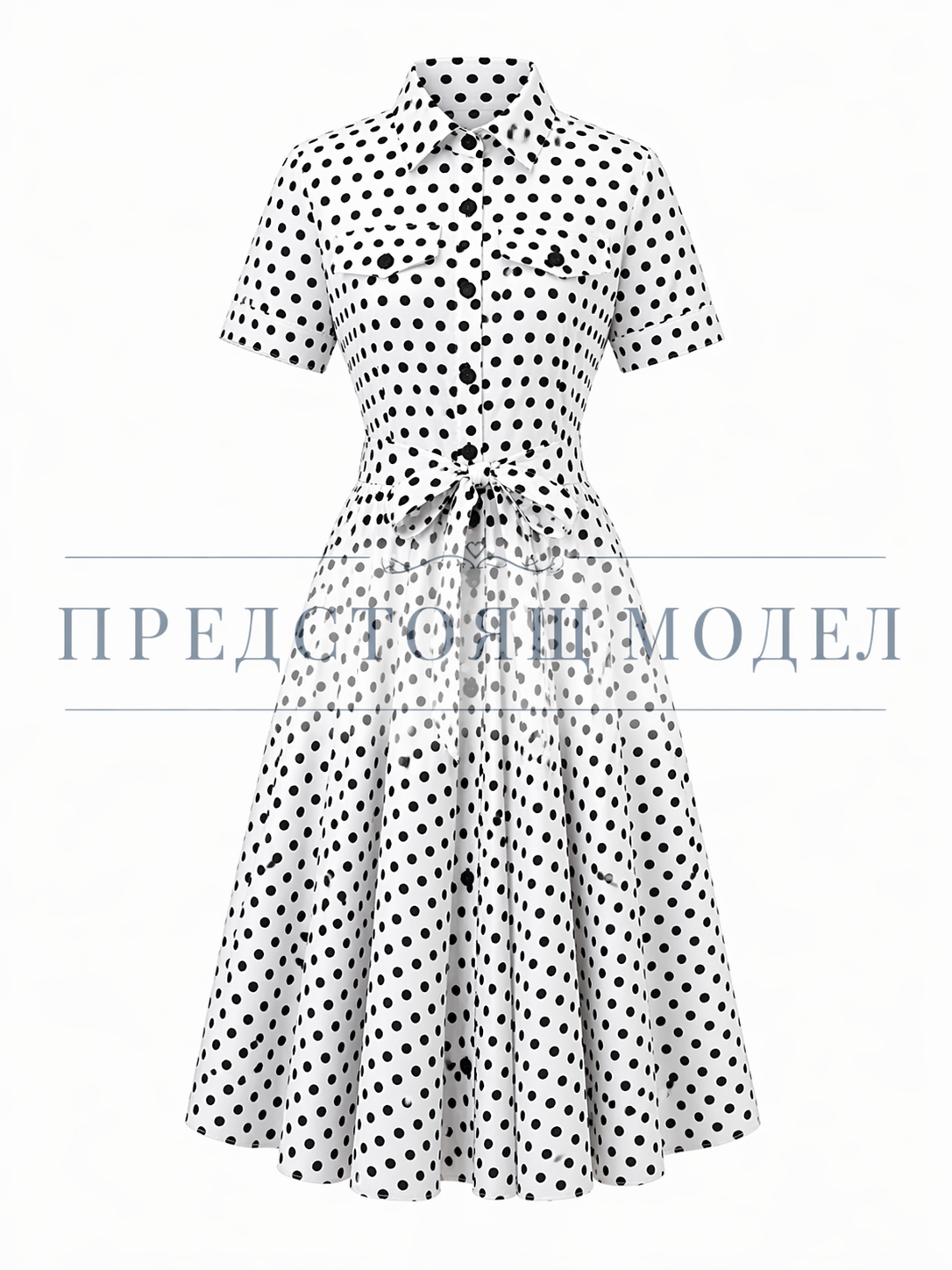 Дамска рокля SELENE съчетава изчистена визия и изразена женственост. Контрастът между бялата основа и черните точки придава стилен и модерен характер, който лесно се откроява.