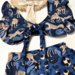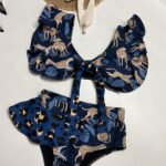 Банският костюм се състои от две части. Горнището е тип бюстие с дебели презрамки с къдри и връзка в средата, която може да се сваля. Долната част на модела е с висока талия, тип бикина.