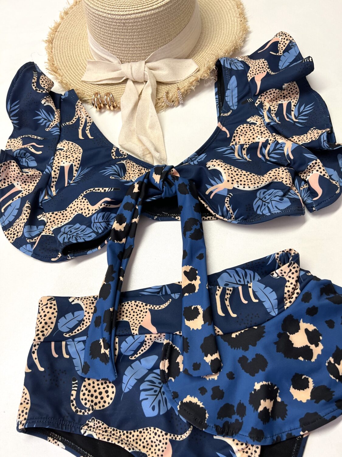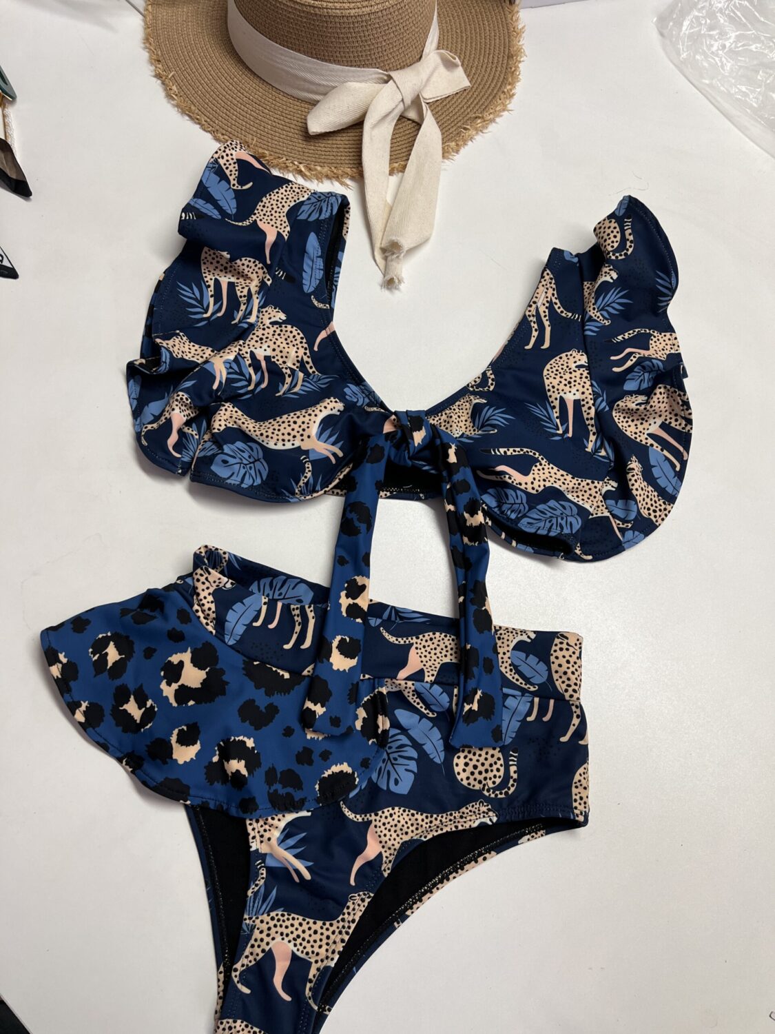 Детайли: къдри на презрамките и в долната част, бюстие, висока талия, подплънки.