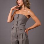 Съвременен прочит на класическия корсет в бежово-кафяв нюанс с фин теракота райе – част от колекцията „Terra Linea“. Дизайнът съчетава изисканост и функционалност, като придава модерен акцент на всяка визия.