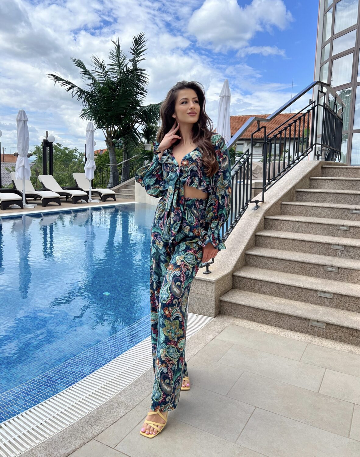 Широк панталон с ластик на талията. Изработен от висококачествена италианска вискоза.