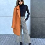 Панталон изработен от вълнена материя в модерен “каре” десен (черно, екрю, брик)