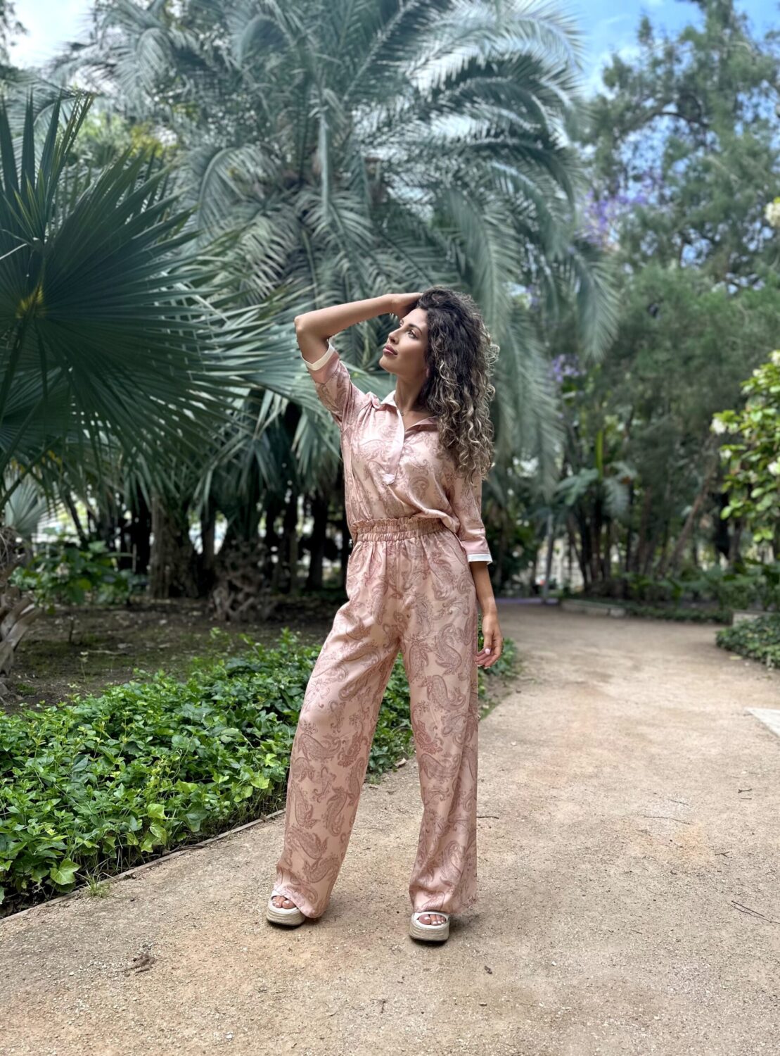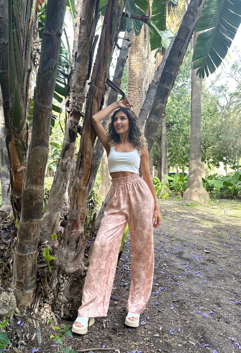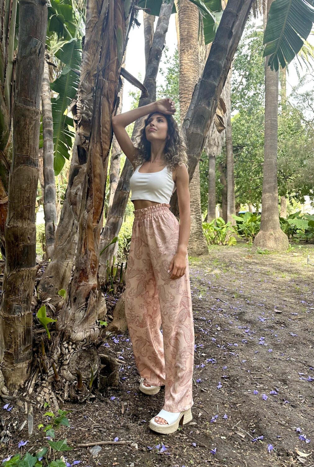 Широк панталон с ластик на талията. Изработен от висококачествена италианска вискоза.