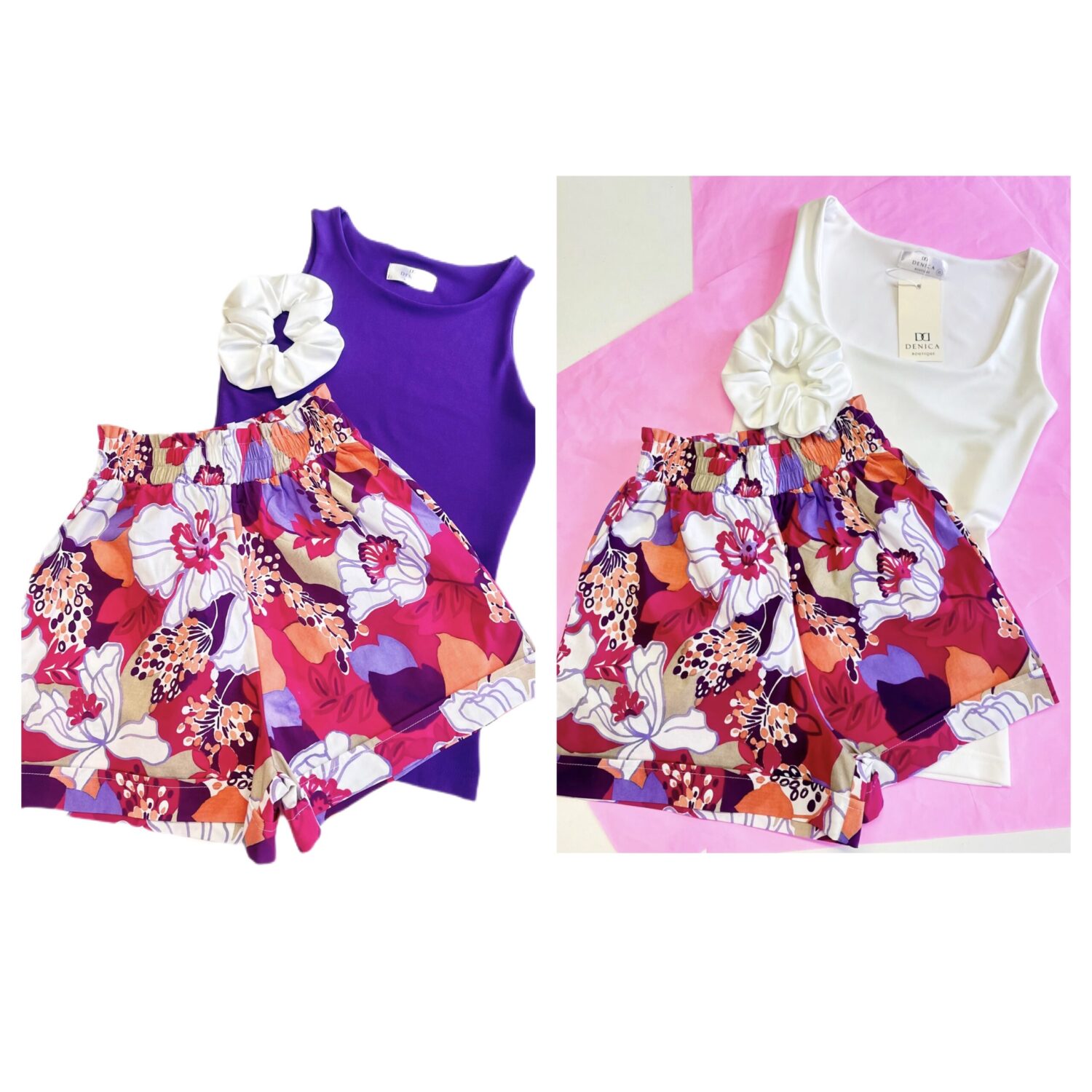 – Къси панталонки с ефектни флорални мотиви изработени от еластичен памук, с два джоба в страничен шев и широк ластик.
