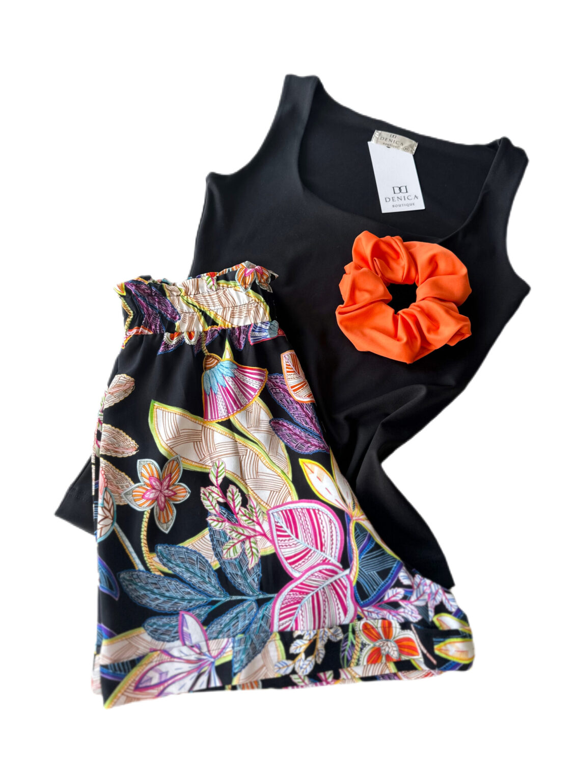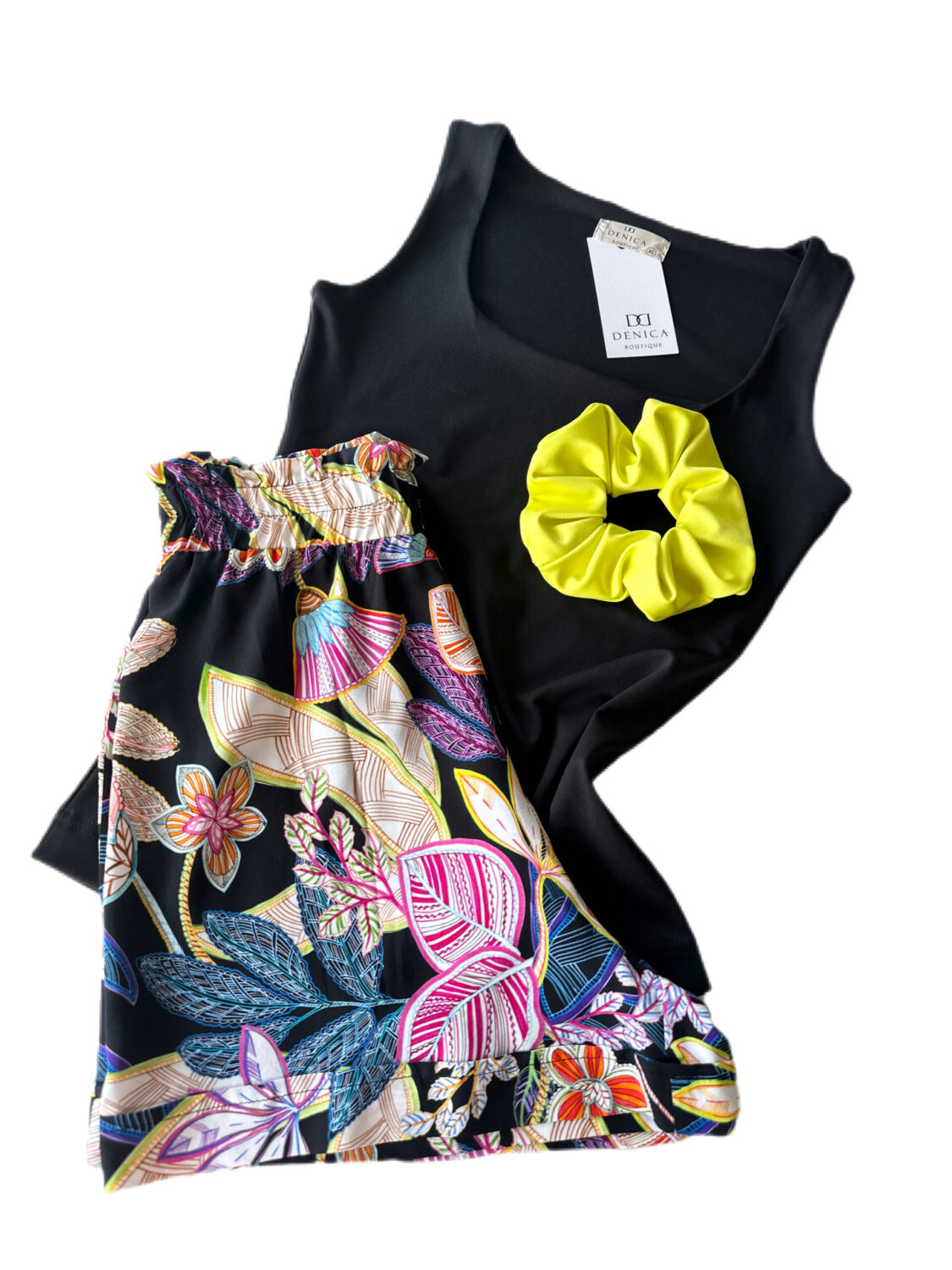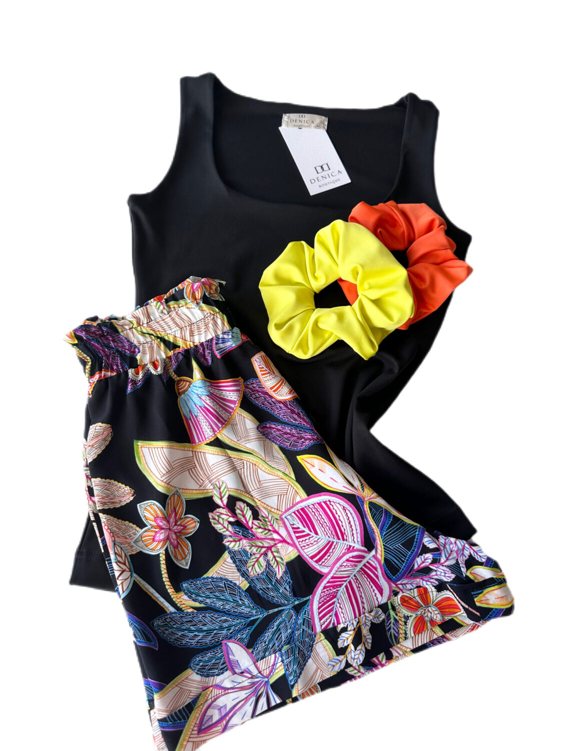 – Къси панталонки с ефектни флорални мотиви, изработени от вискоза с широк ластик