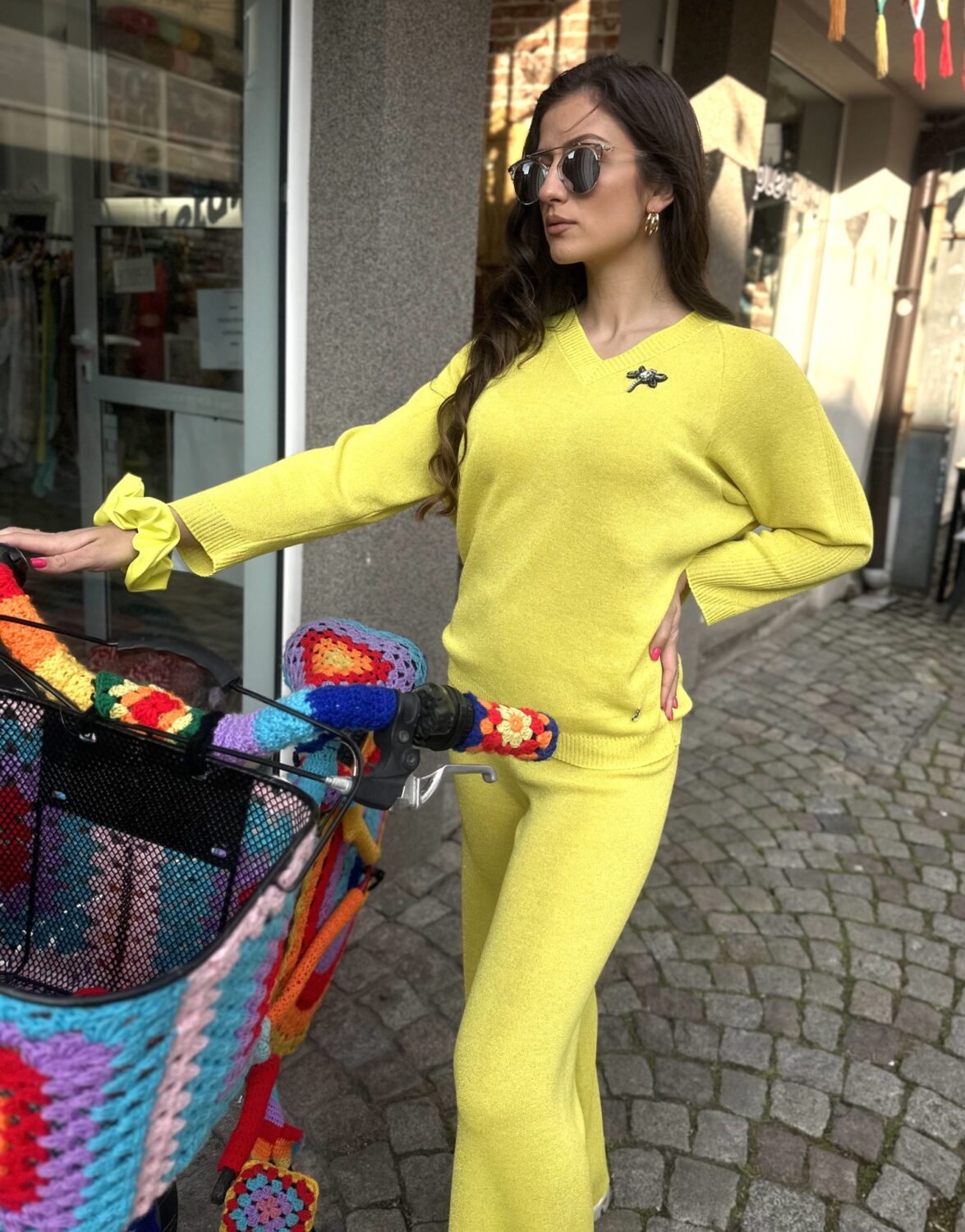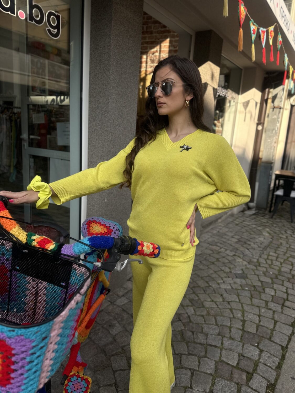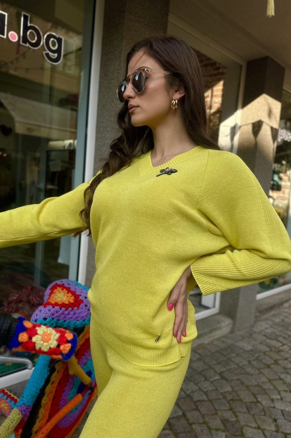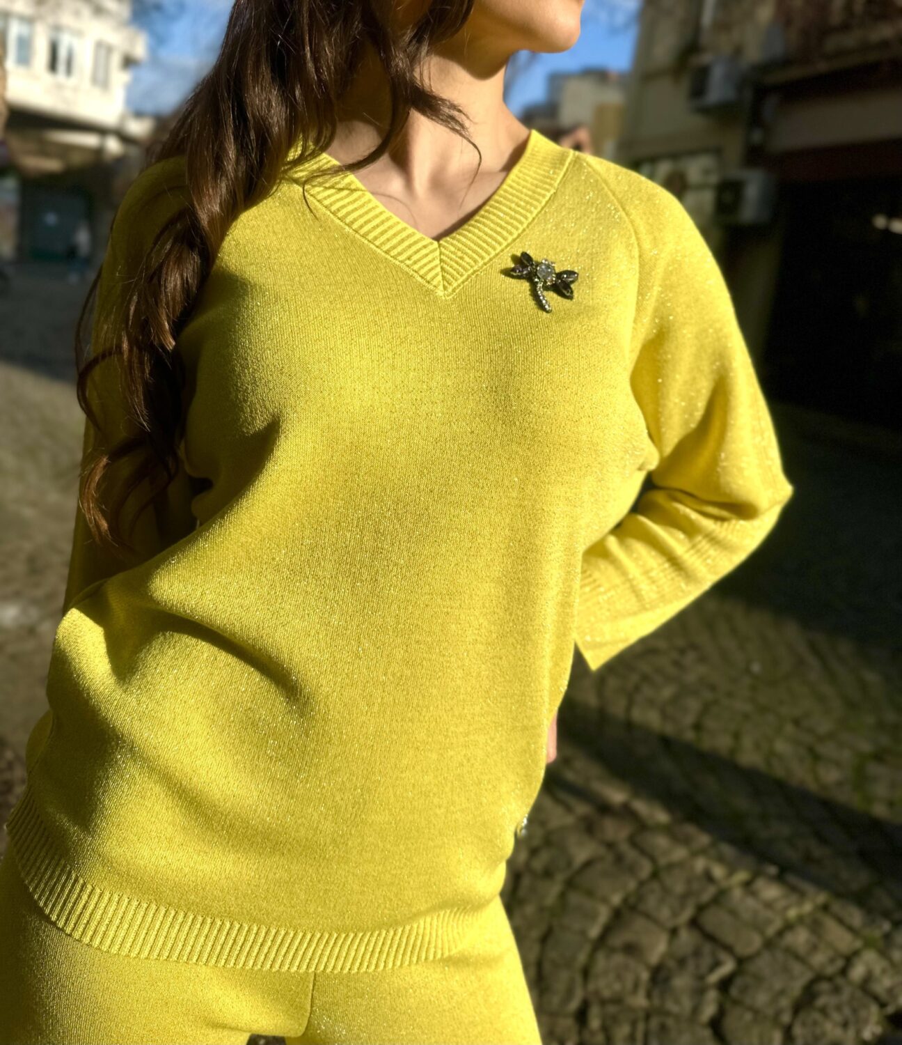 Дамски сет “Neon Yellow” изработен от фино италианско плетивo с деликатна ламе нишка