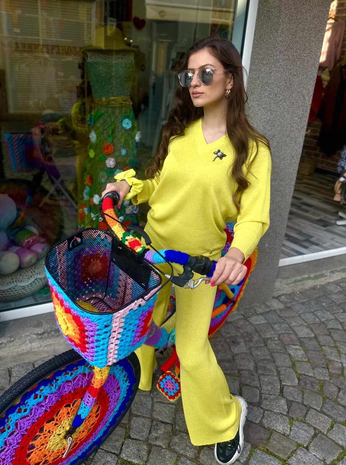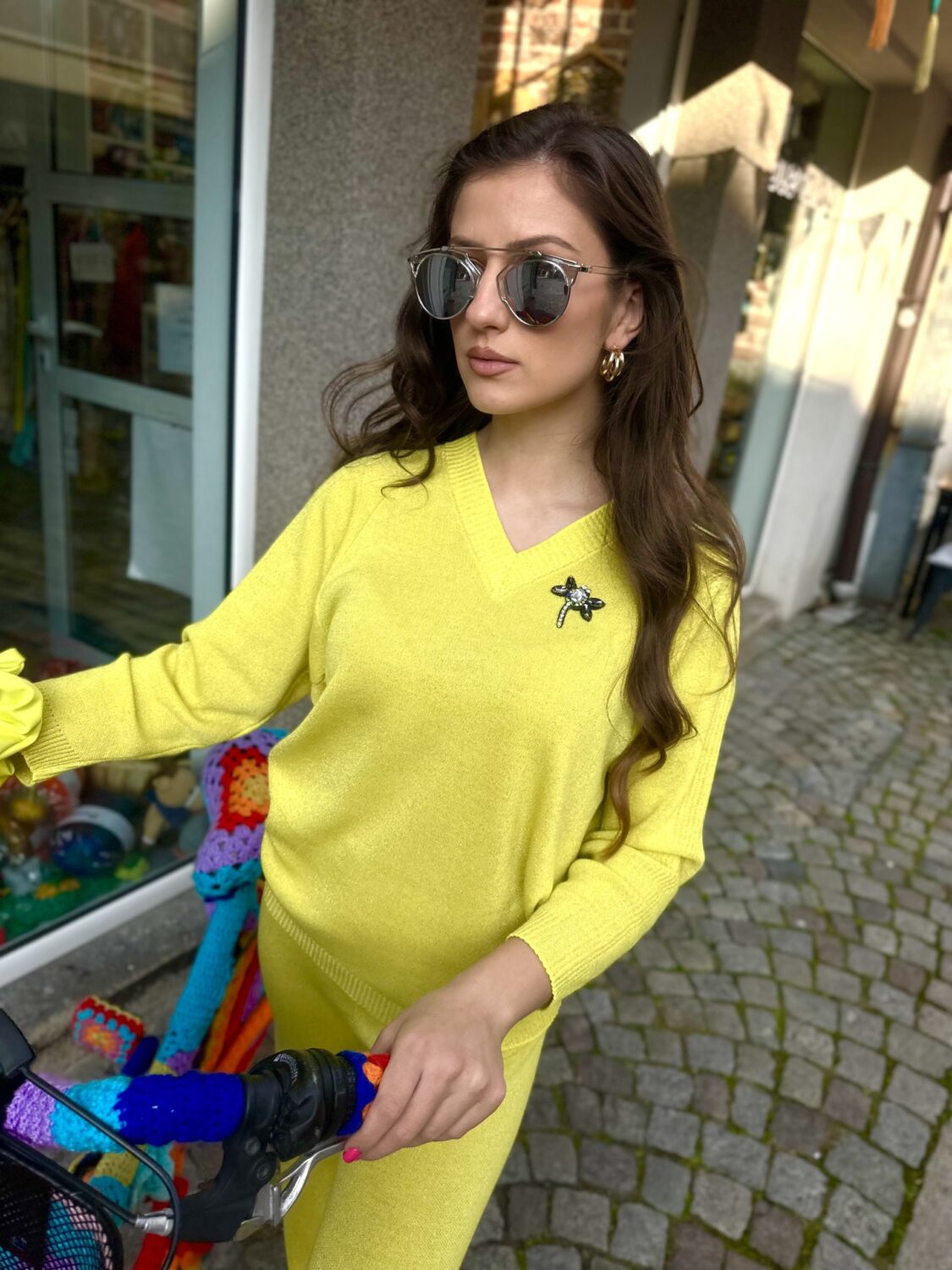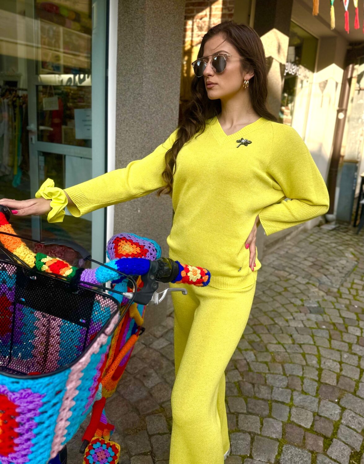 Дамски сет “Neon Yellow” изработен от фино италианско плетивo с деликатна ламе нишка