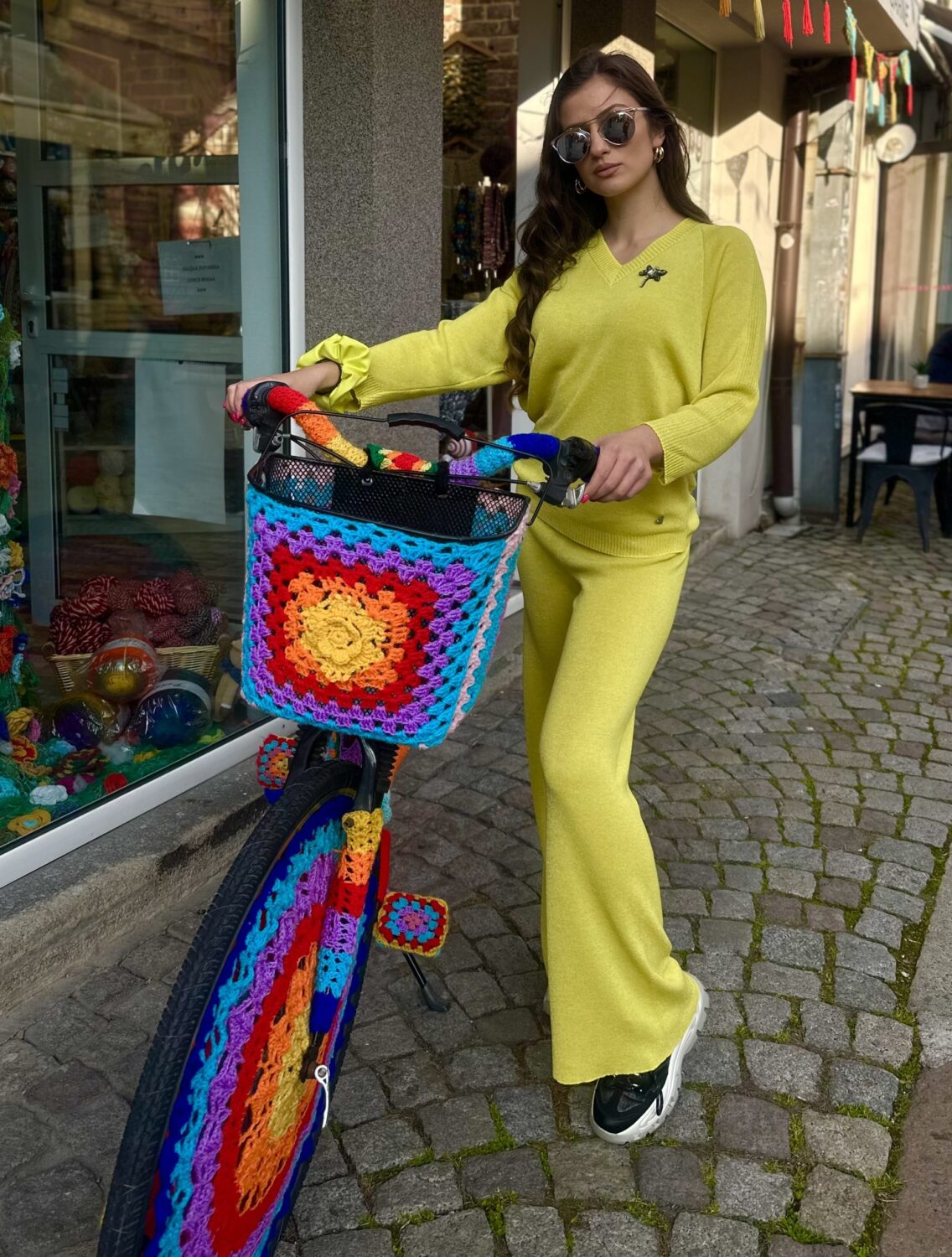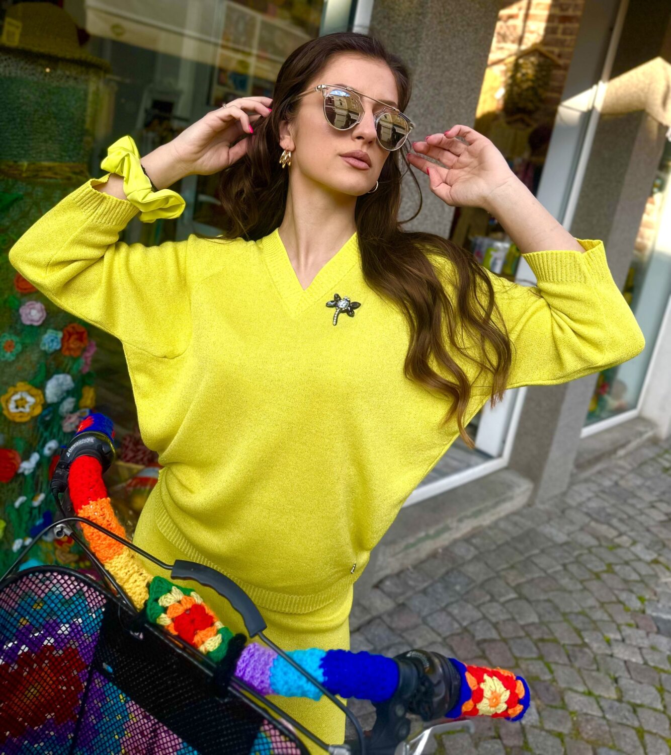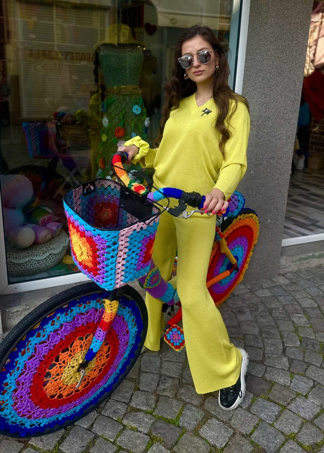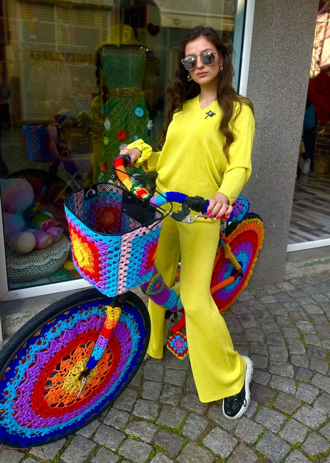 Дамски сет “Neon Yellow” изработен от фино италианско плетивo с деликатна ламе нишка