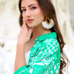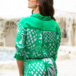* Среден ръкав със зелен маншет и надпис Denica boutique