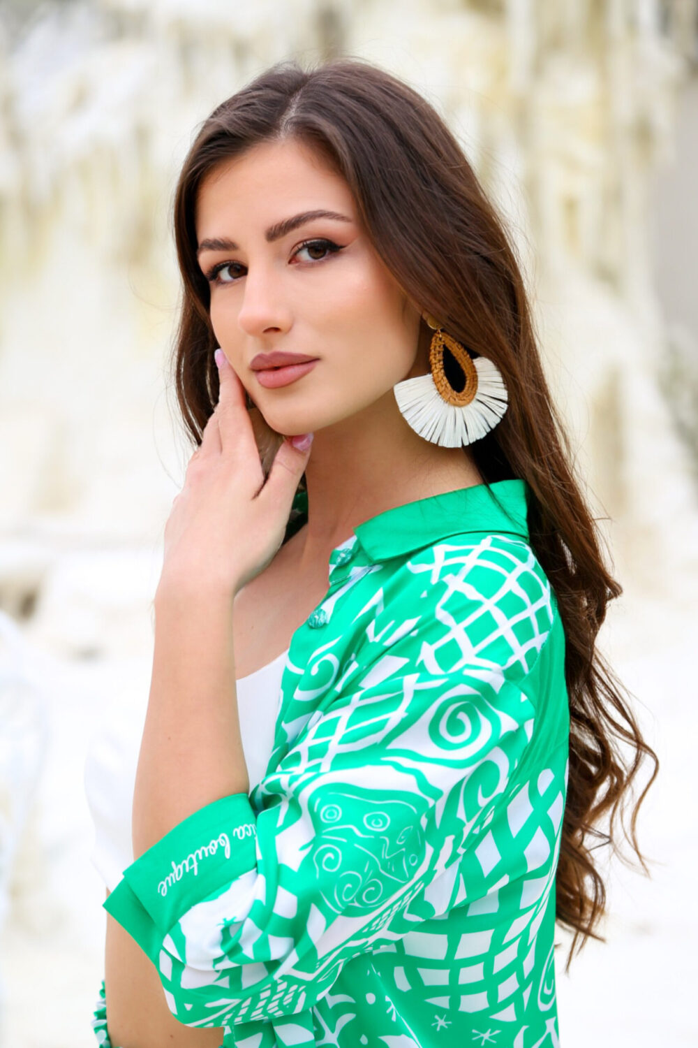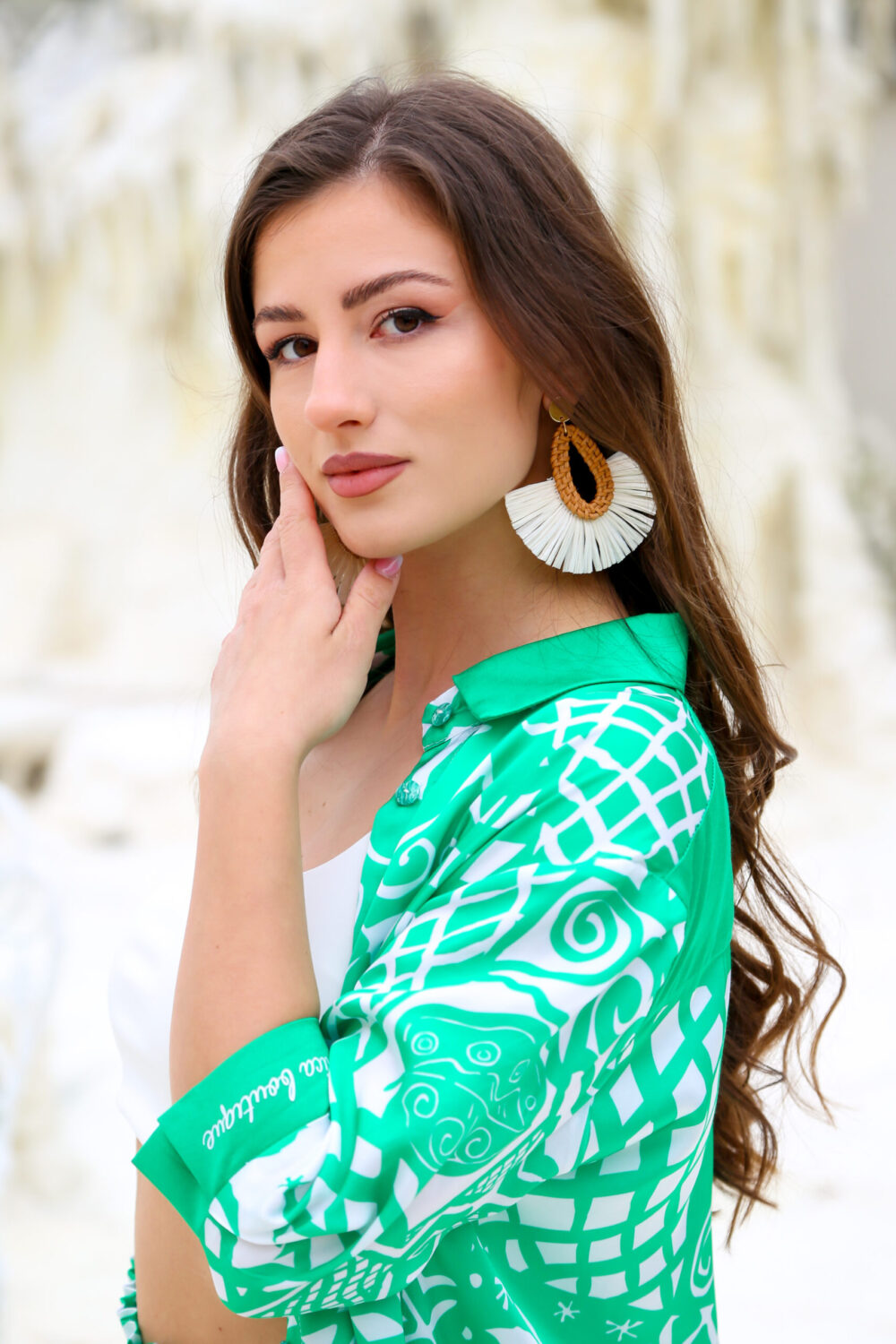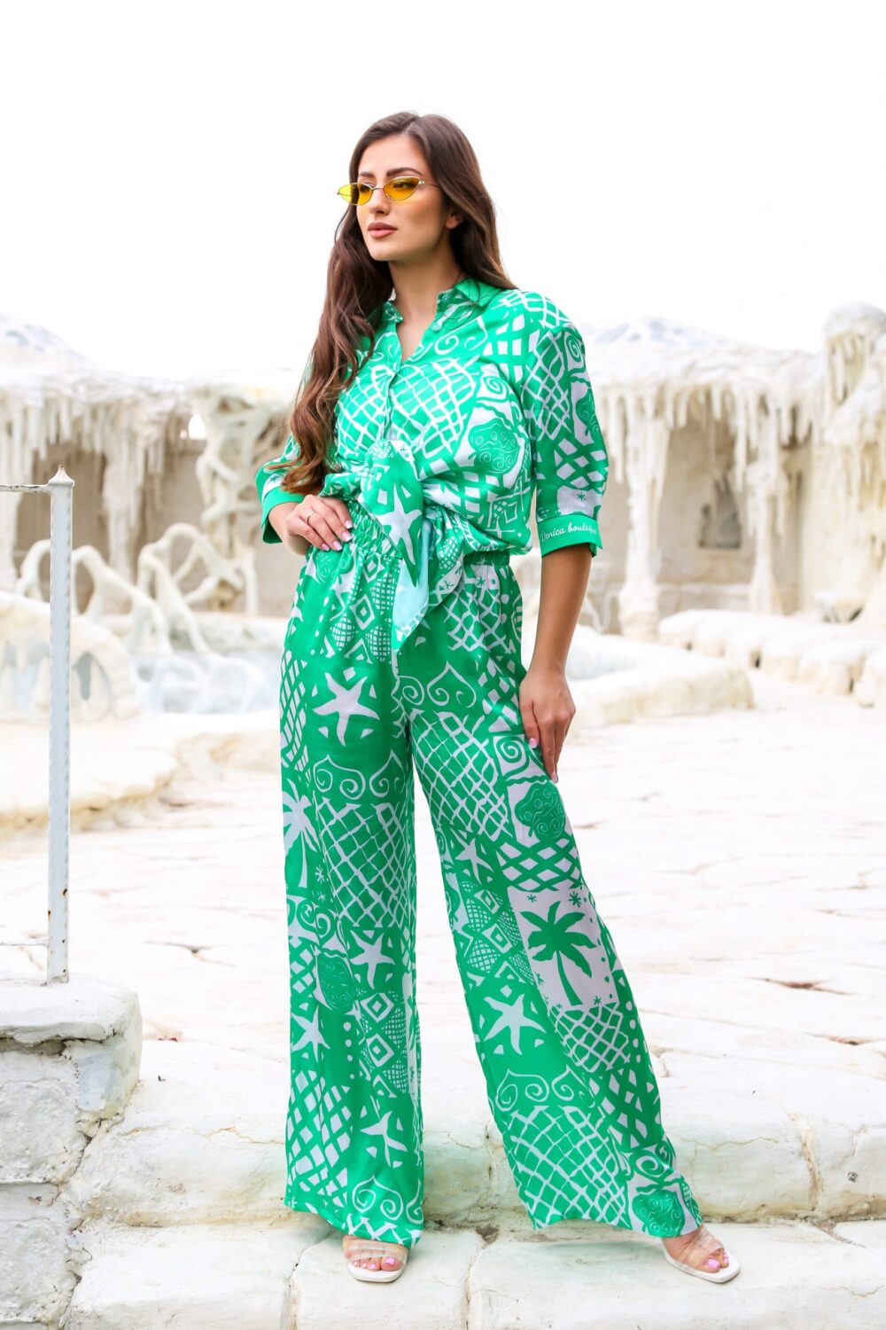 * Среден ръкав със зелен маншет и надпис Denica boutique