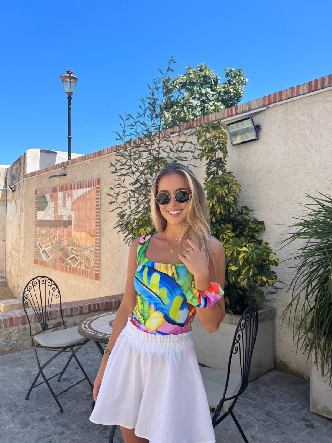 Дамски топ “Exotic” в пъстри цветове с двойна горна част до под бюст.