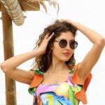 Топ с ефектни ръкави комбинирани в лимонено зелени или оранжеви акценти.