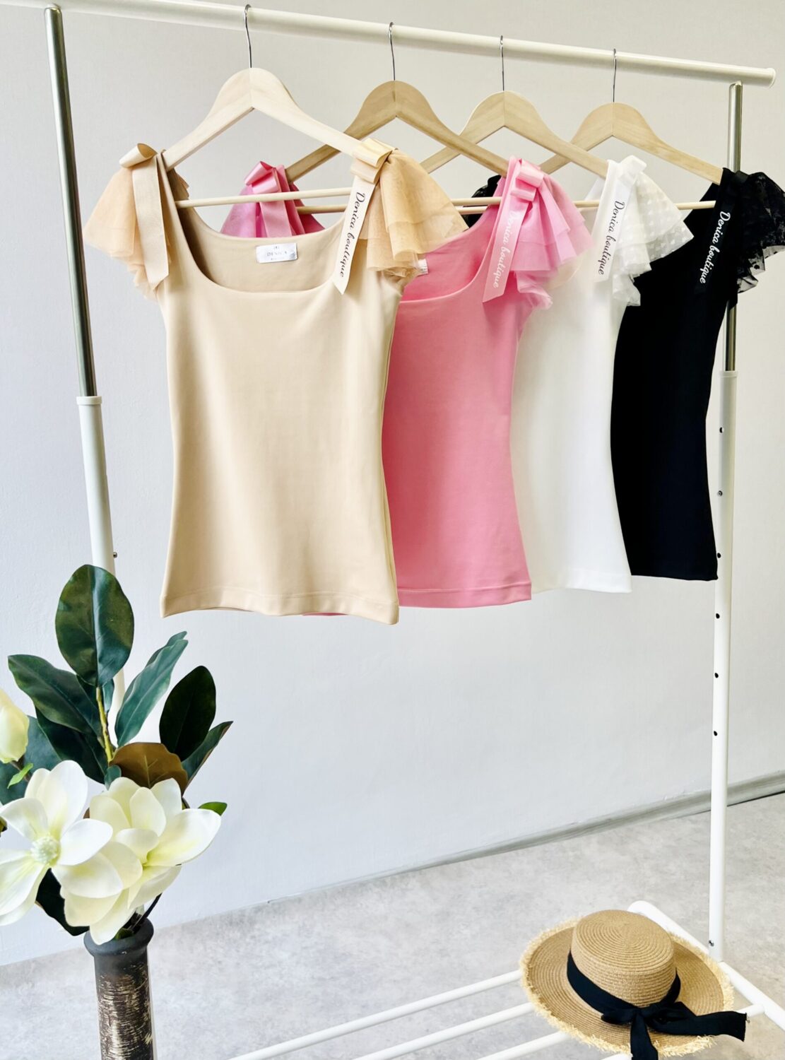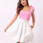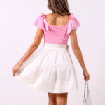 Топ “STELLA” е изработен от полиамидно трико. В допълнение сме заложили на нежни  трипластови крилца за ръкави и панделки с логото на DENICA BOUTIQUE.