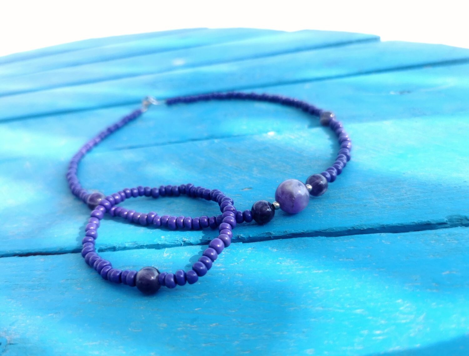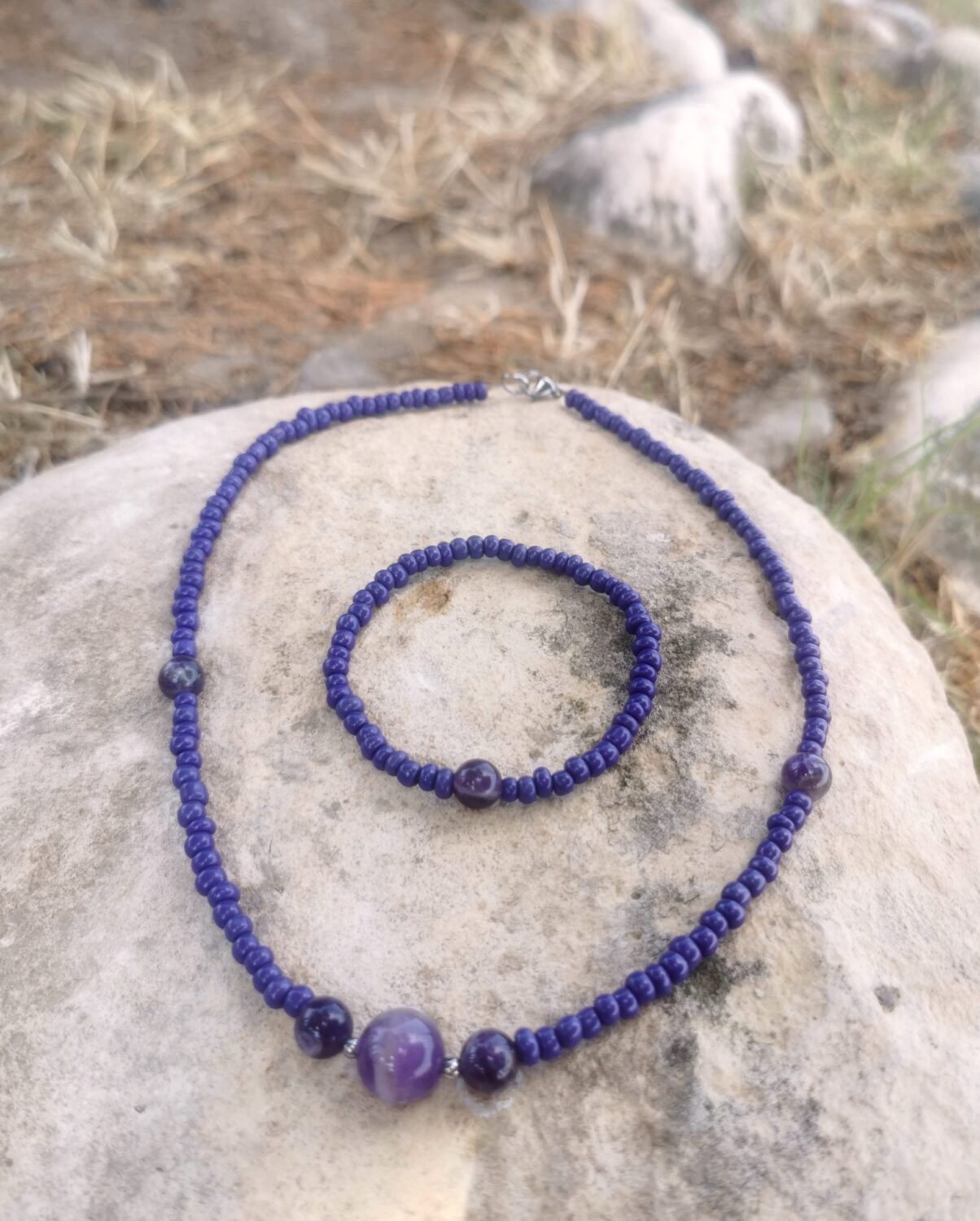 „Handmade колие и гривна във вдъхновяващ лилав цвят.