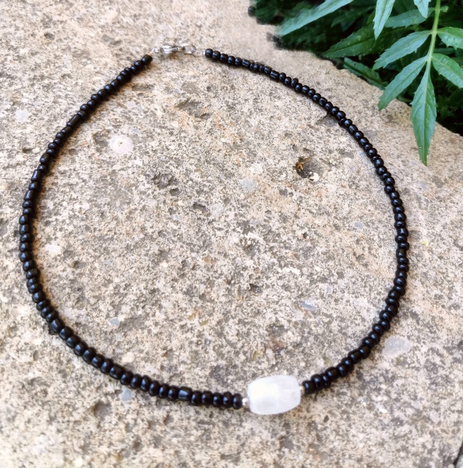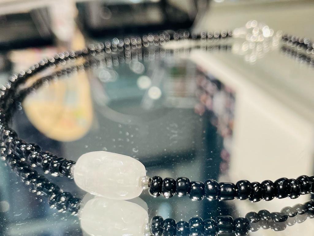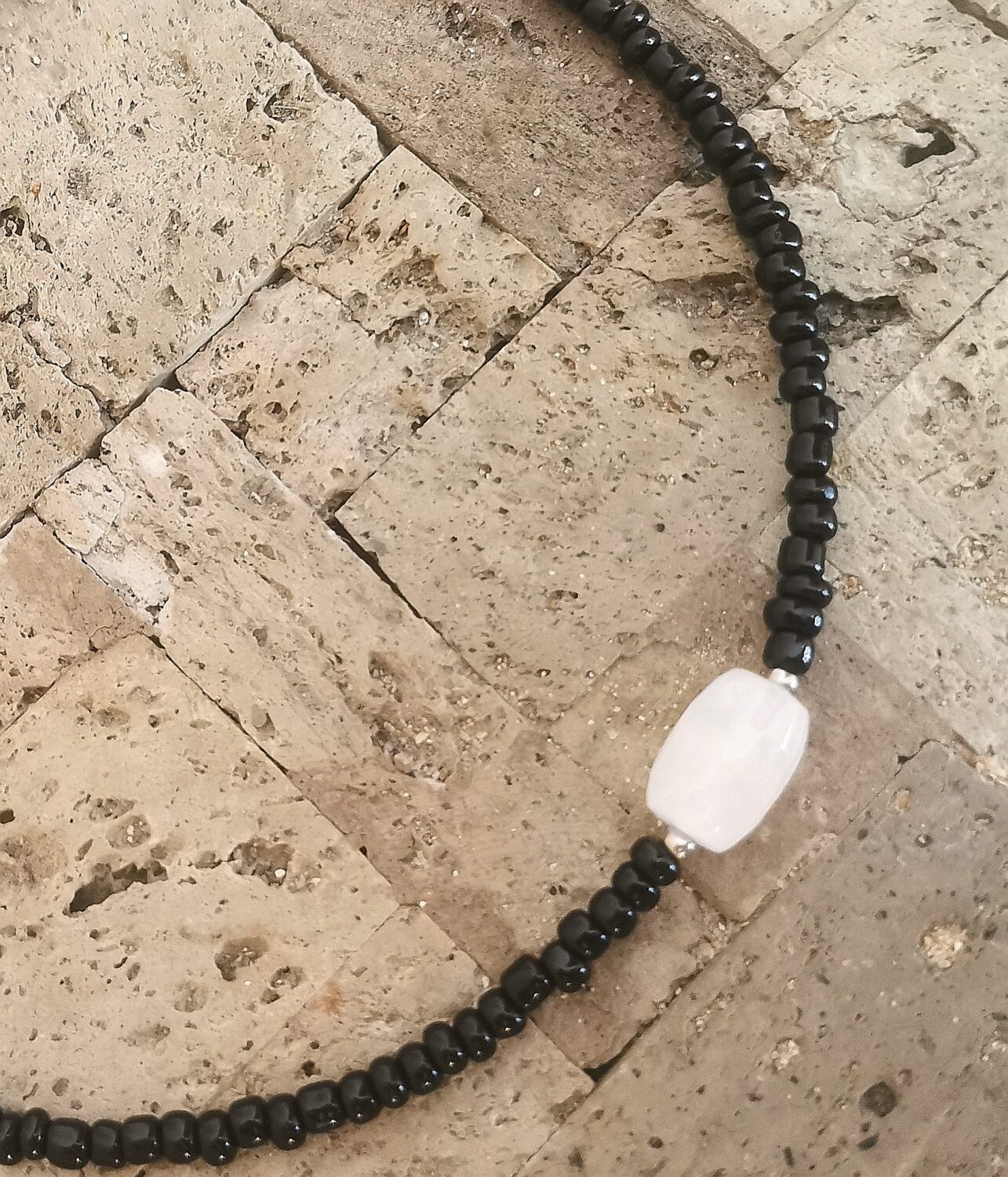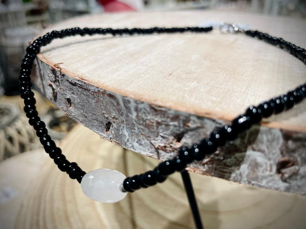 Дамско Handmade колие изработено от естествен камък Планински кристал и черни мъниста.