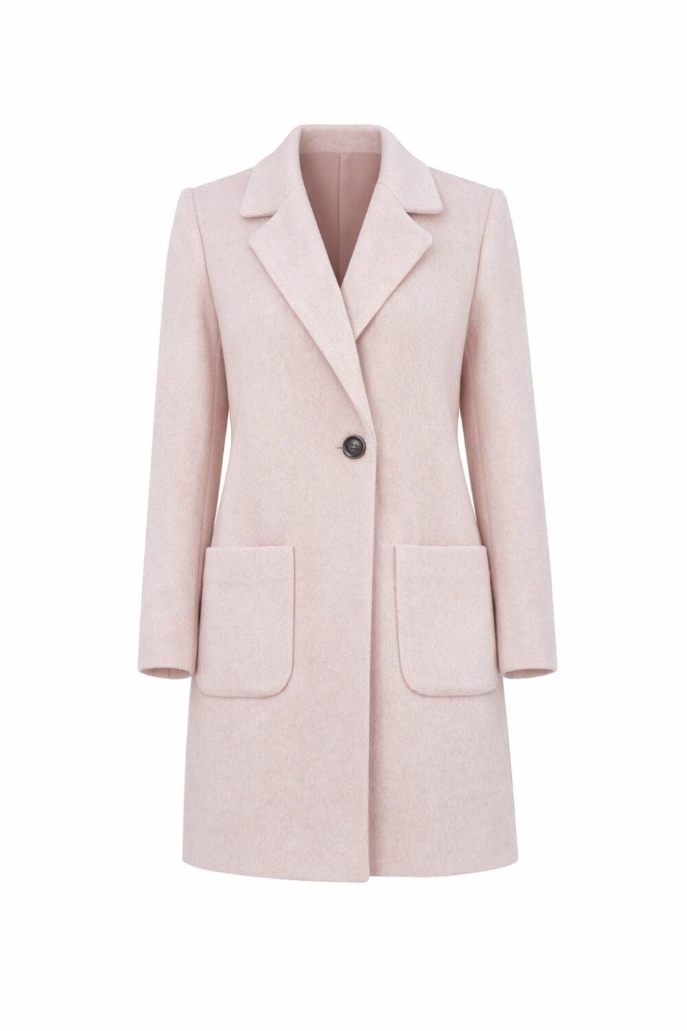 Прекрасно палто в нежен цвят – пепел от рози, изработено от висококачествен плат с деликатни малки косъмчета.