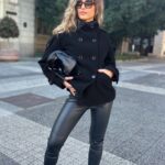 С късата си, модерна кройка и изчистен силует, моделът е идеален за градско ежедневие. Двуредовото закопчаване с контрастни копчета, високата яка и елегантните детайли по раменете придават изтънчено военен шик, който няма да остане незабелязан.