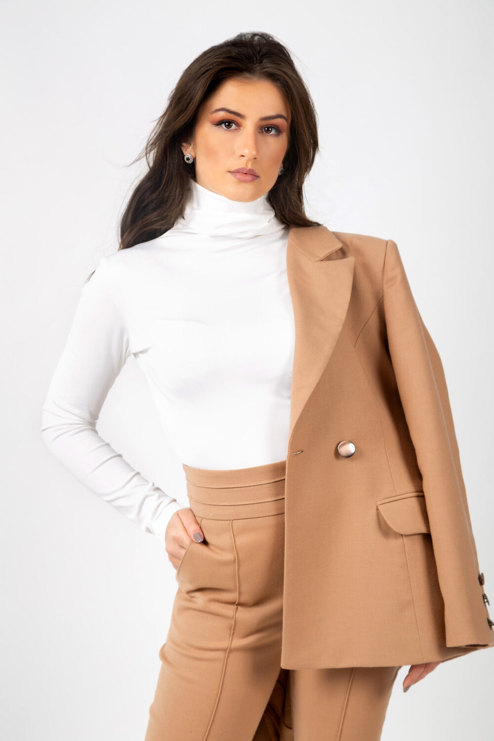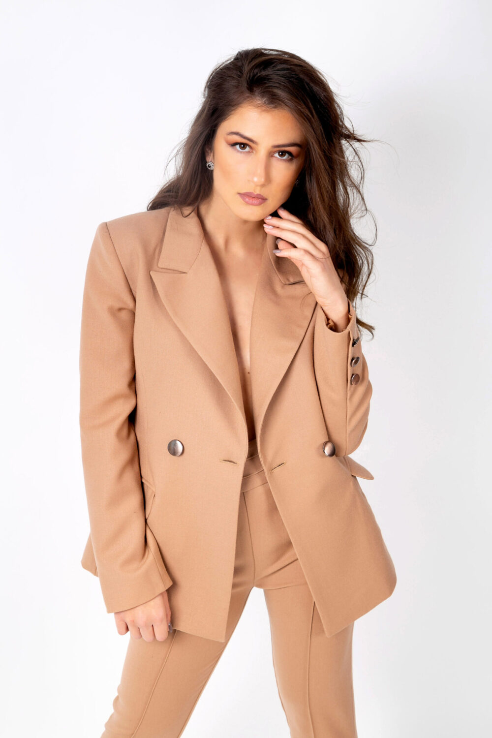 Създадено да задоволи и най-капризните желания на дамите. Втален издължен силует, който оформя извивките на тялото, без да описва фигурата. Двуредното закопчаване придава елегантно и модерно излъчване.