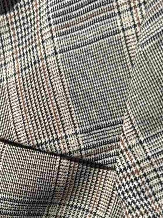 Плата е с дискретна златиста ламе нишка, вплетена в преливащо кафяво-бежово каре, която придава деликатен блясък и изисканост на десена.“