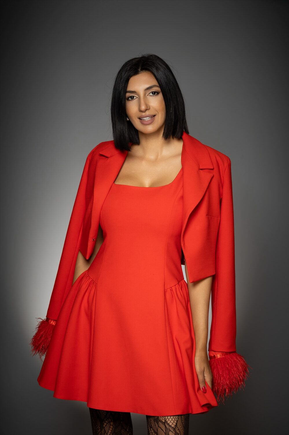 * Сакото е подходящо както за самостоятелно носене, така и в комбинация с рокля от същата линия.