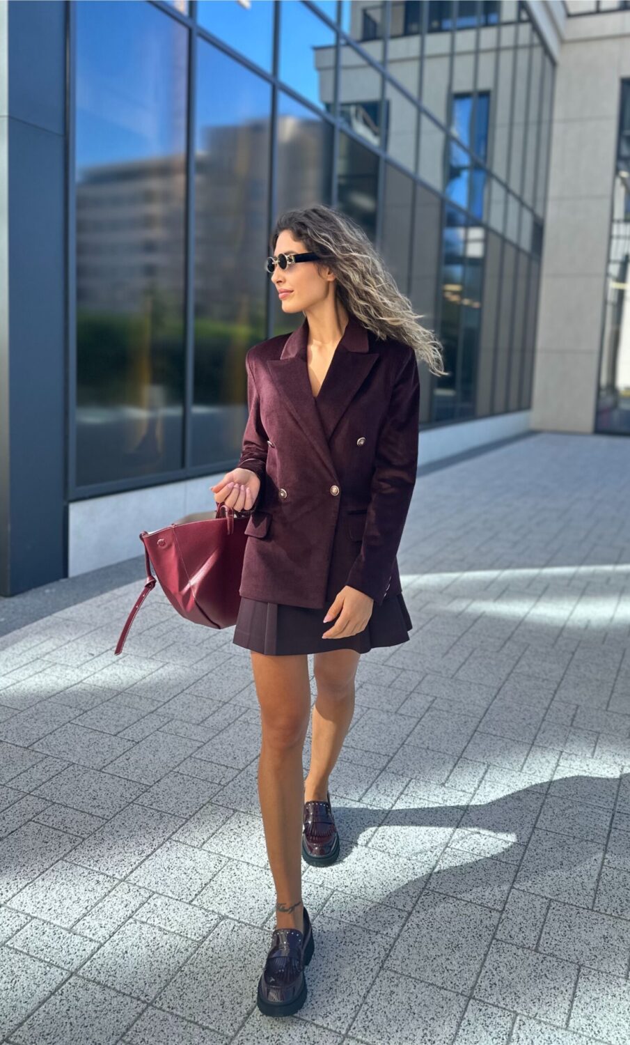 Дамско сако в цвят патладжан от памучно джинс кадифе съчетава изтънченост и спортно-елегантна визия.