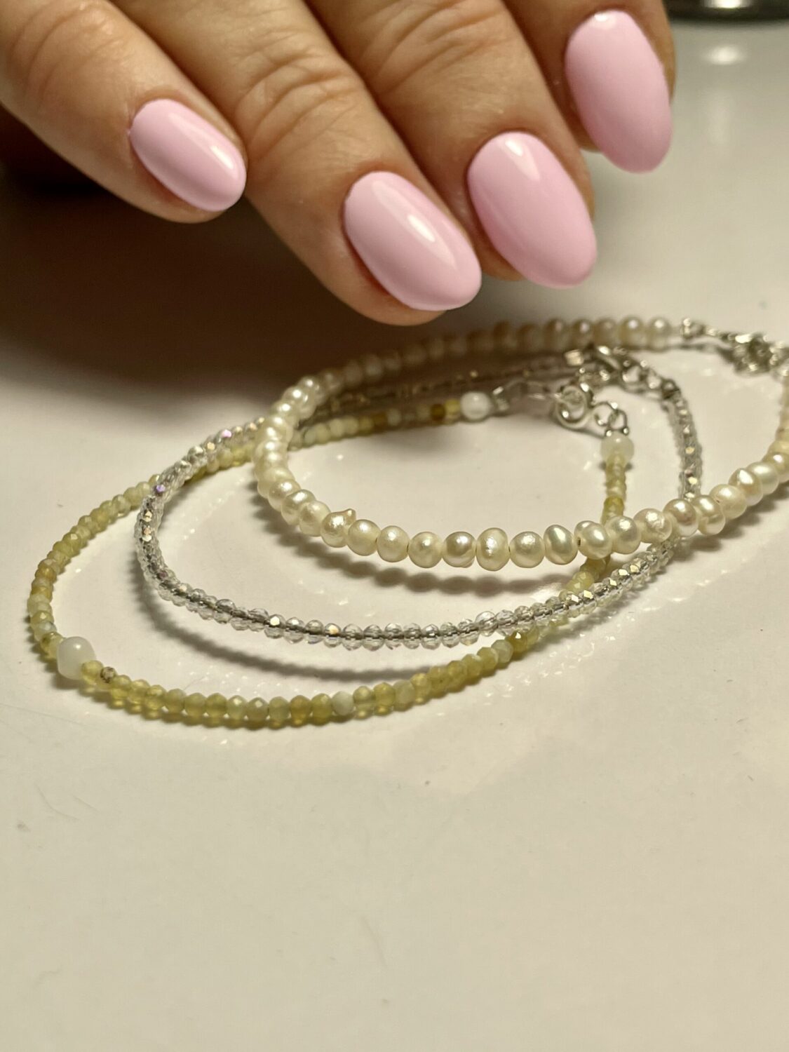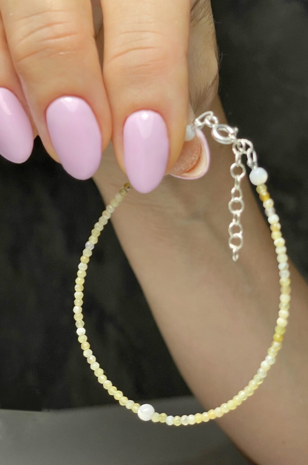 Ръчно изработена гривна от ахат и седефени топченца.